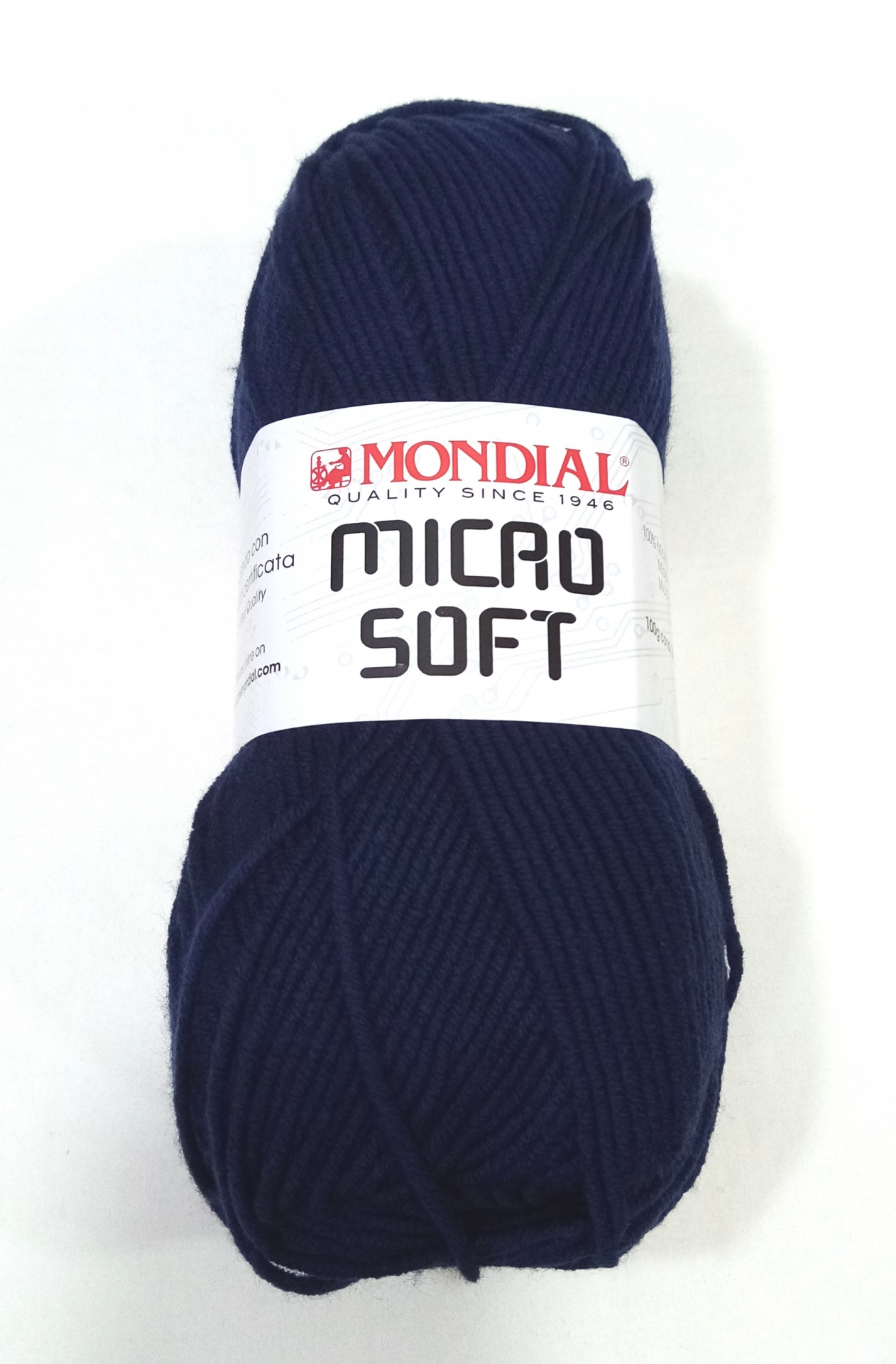 Lã Mondial Micro Soft 306 2,76 € Partilhar O produto encontra-se sem stock. Lã Mondial Micro Soft em azul escuro, cor 306 100% Microfibra acrílica 100gr, 220m Agulhas 4.5 ou 5.5