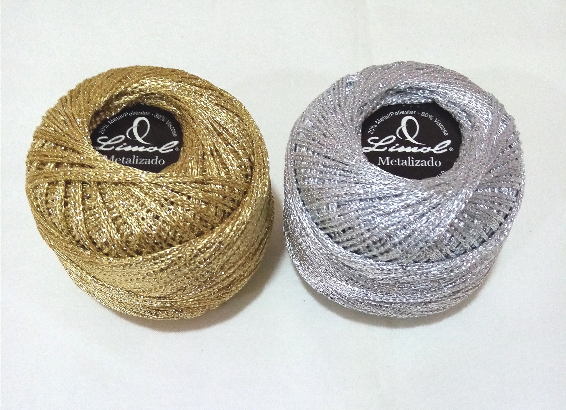 Linha de Crochet Limol Metalizado 5,20 € Partilhar Cor Dourado Prata Adicionar Contactar 6 unidades em stock Linhas de crochet Limol em dourado ou prata. 25gr, 104m 20%metal/poliéster, 80%viscose Equivalente à linha de crochet nº12 Nº12 Agulhas - 1.25/1.50