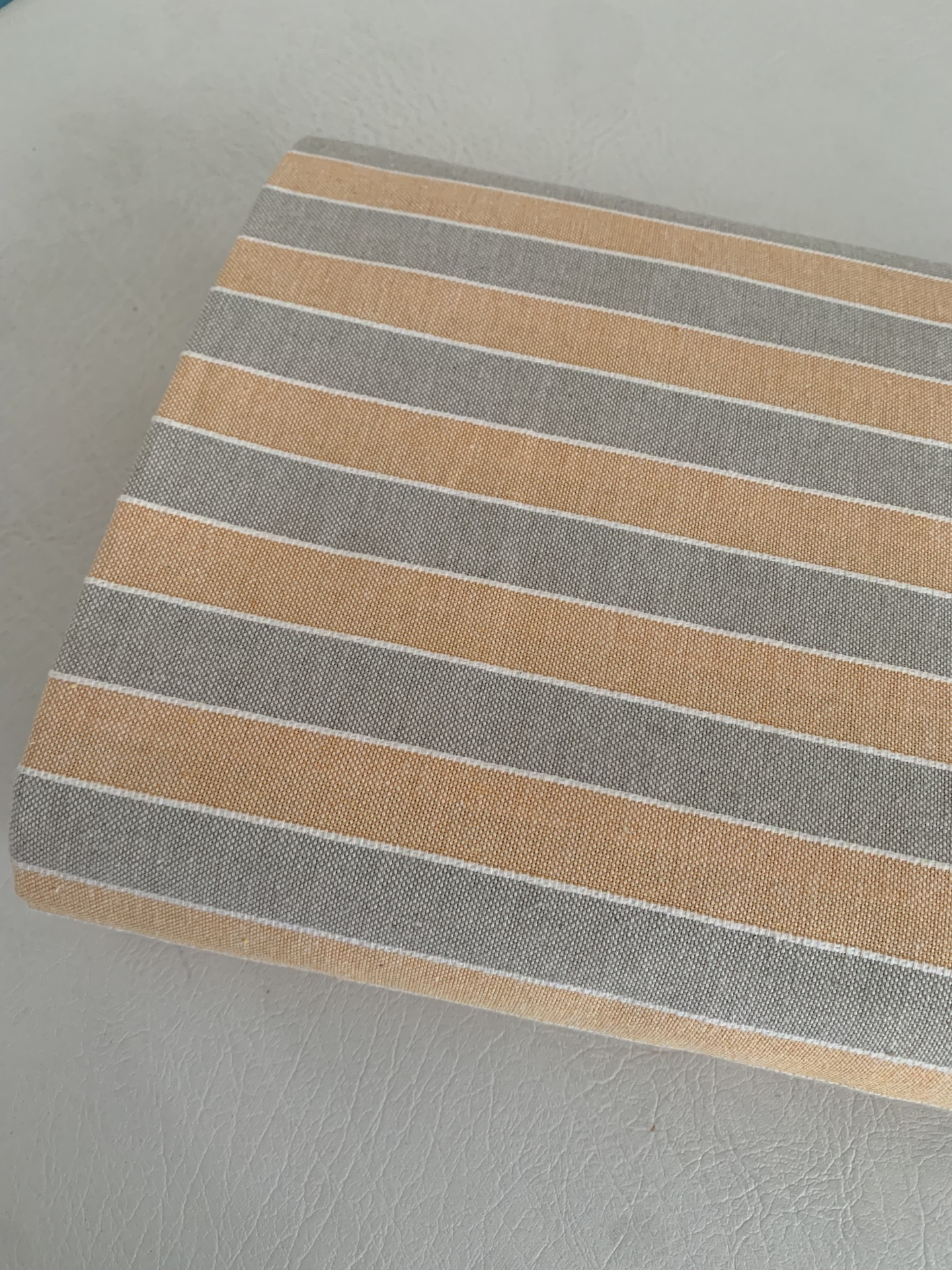 Tecido 65%poliéster, 35%algodão, em tons de amarelo e creme.