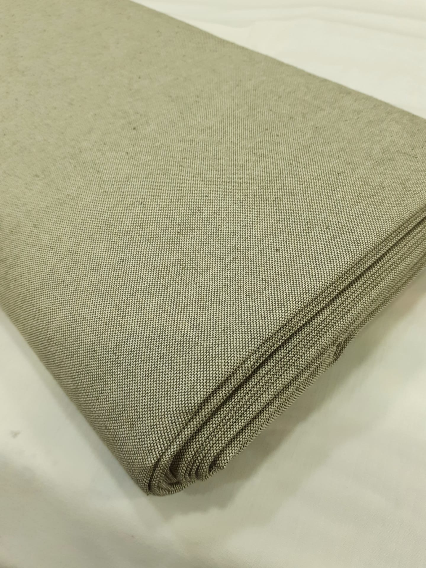 Tecido 63%algodão, 30%poliéster e 7% linho, em verde seco