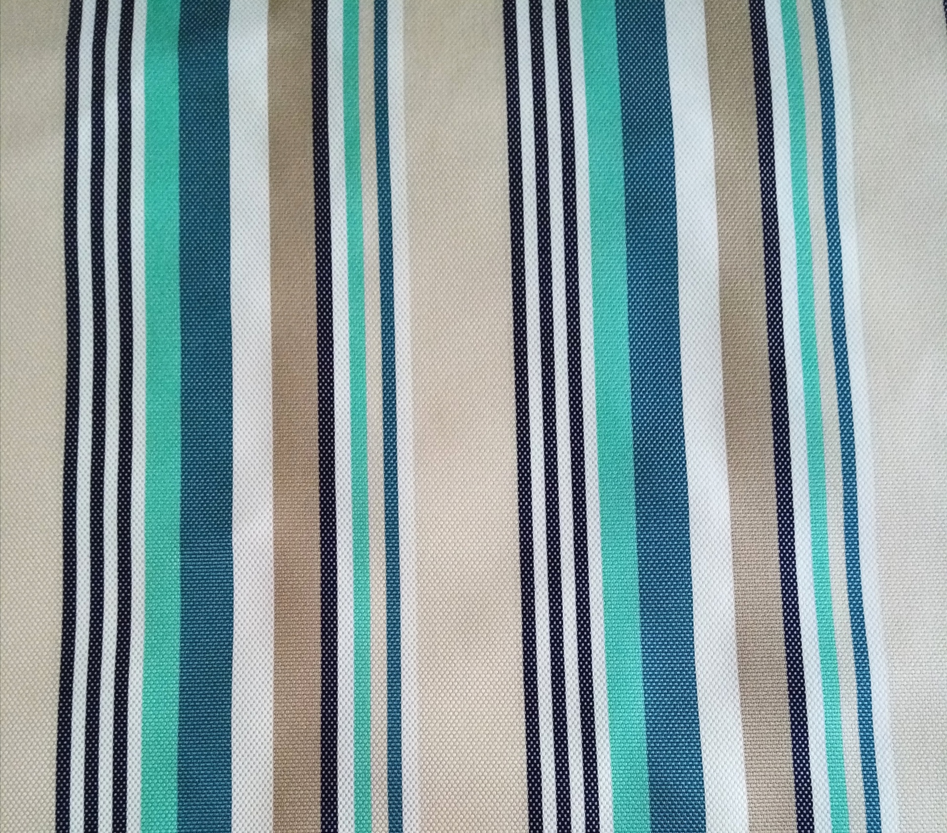 Lona 100% Polipropileno com riscas verde menta e beges.