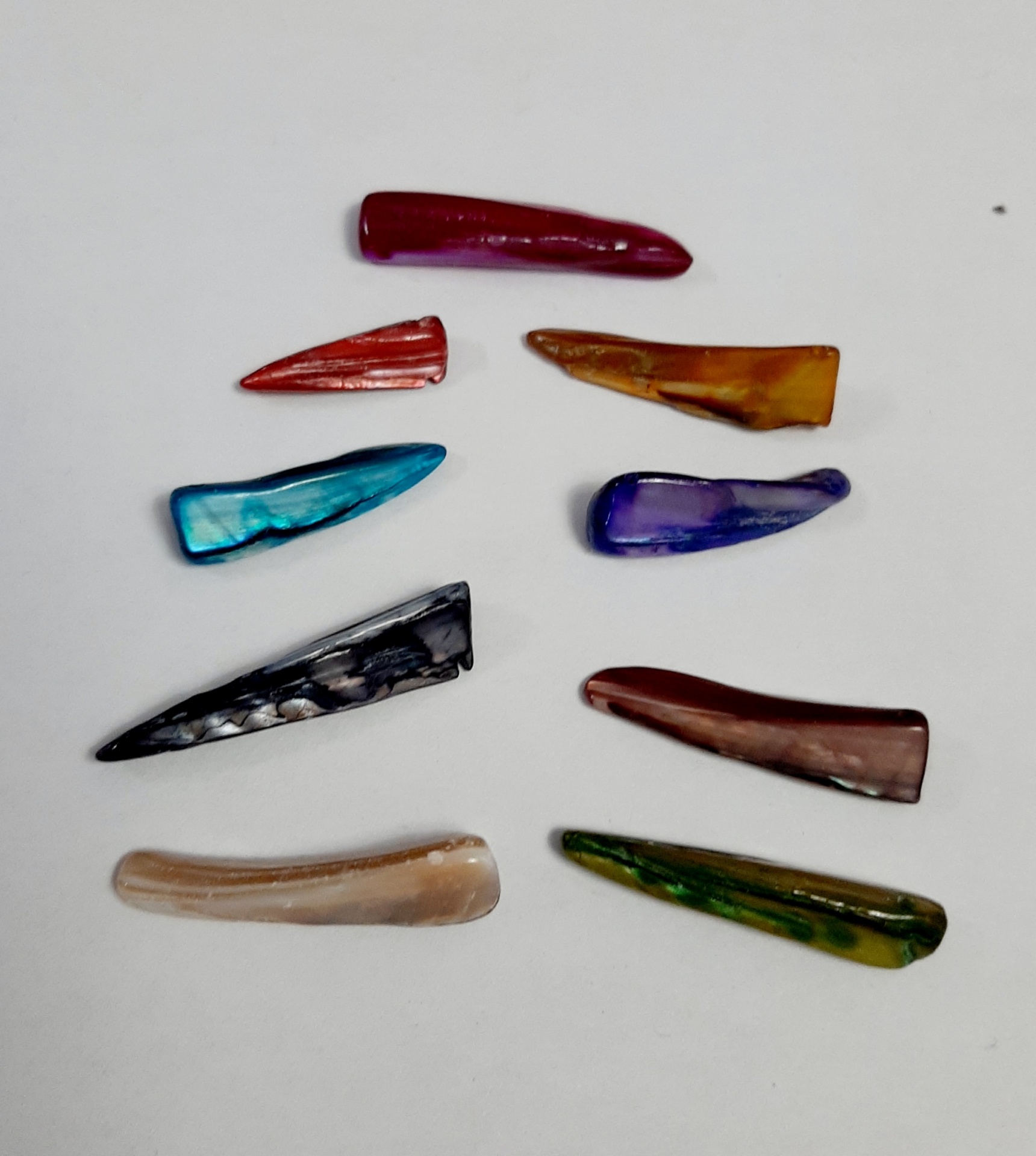 Missangas em Madrepérola compridas 0,10 € Partilhar Cor Pérola Verde Castanho Preto Roxo Azul Laranja Vermelho Rosa Fúscia Adicionar Contactar 10 unidades em stock Missangas em madrepérola compridas Formas e tamanhos ligeramente irregulares, comprimento varia entre 17 e 30mm