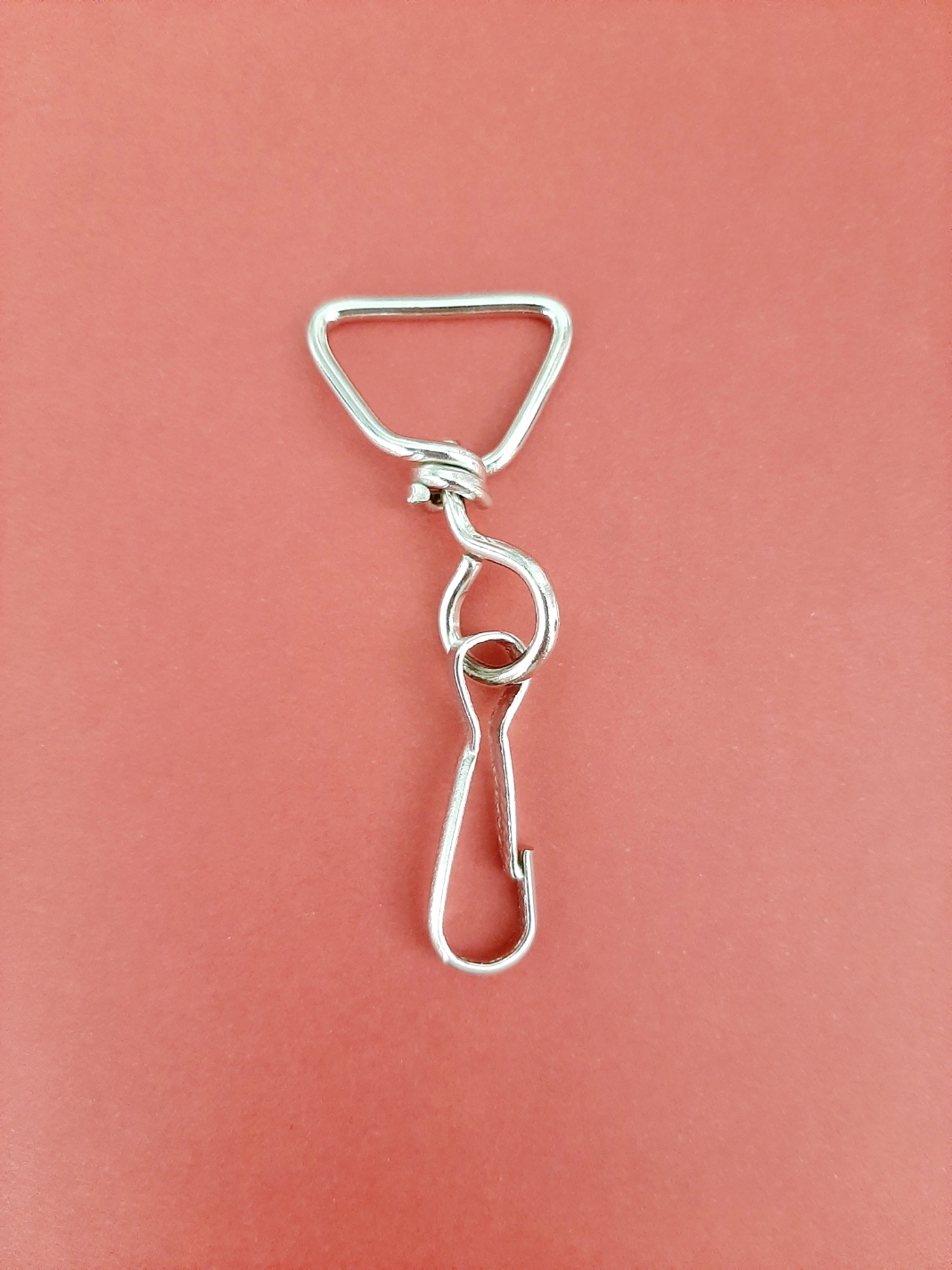 Mosquetão Triangular 0,60 € Partilhar Adicionar Contactar 62 unidades em stock Mosquetão prateado triangular 60mm