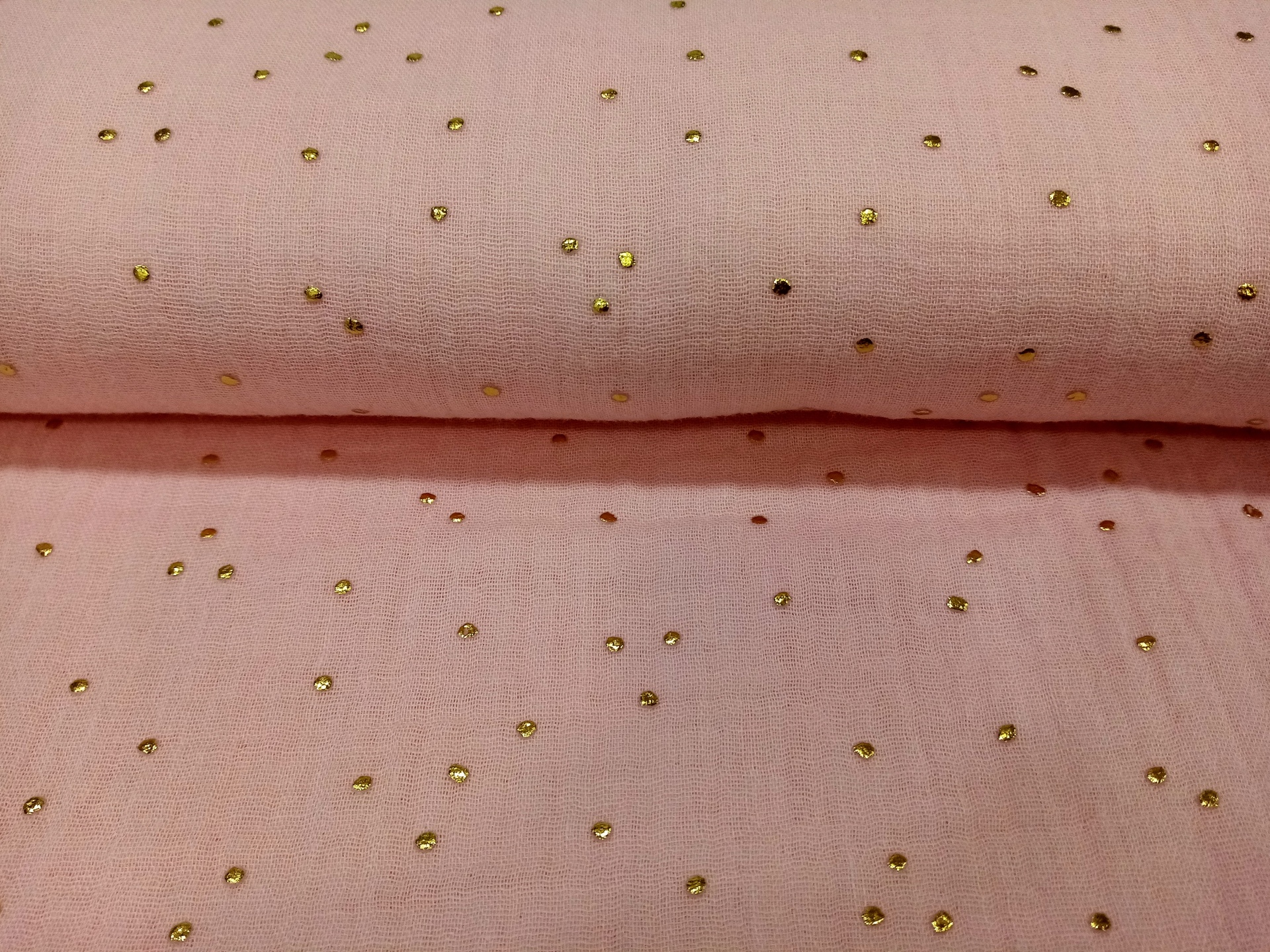 Musselina Rosa com Pintas Douradas 0,14 € Partilhar O produto encontra-se sem stock. Tecido musselina 100% algodão em rosa com pintas douradas 1.40m de largo Corte mínimo 20cm Tags Bebébandanasbabetes