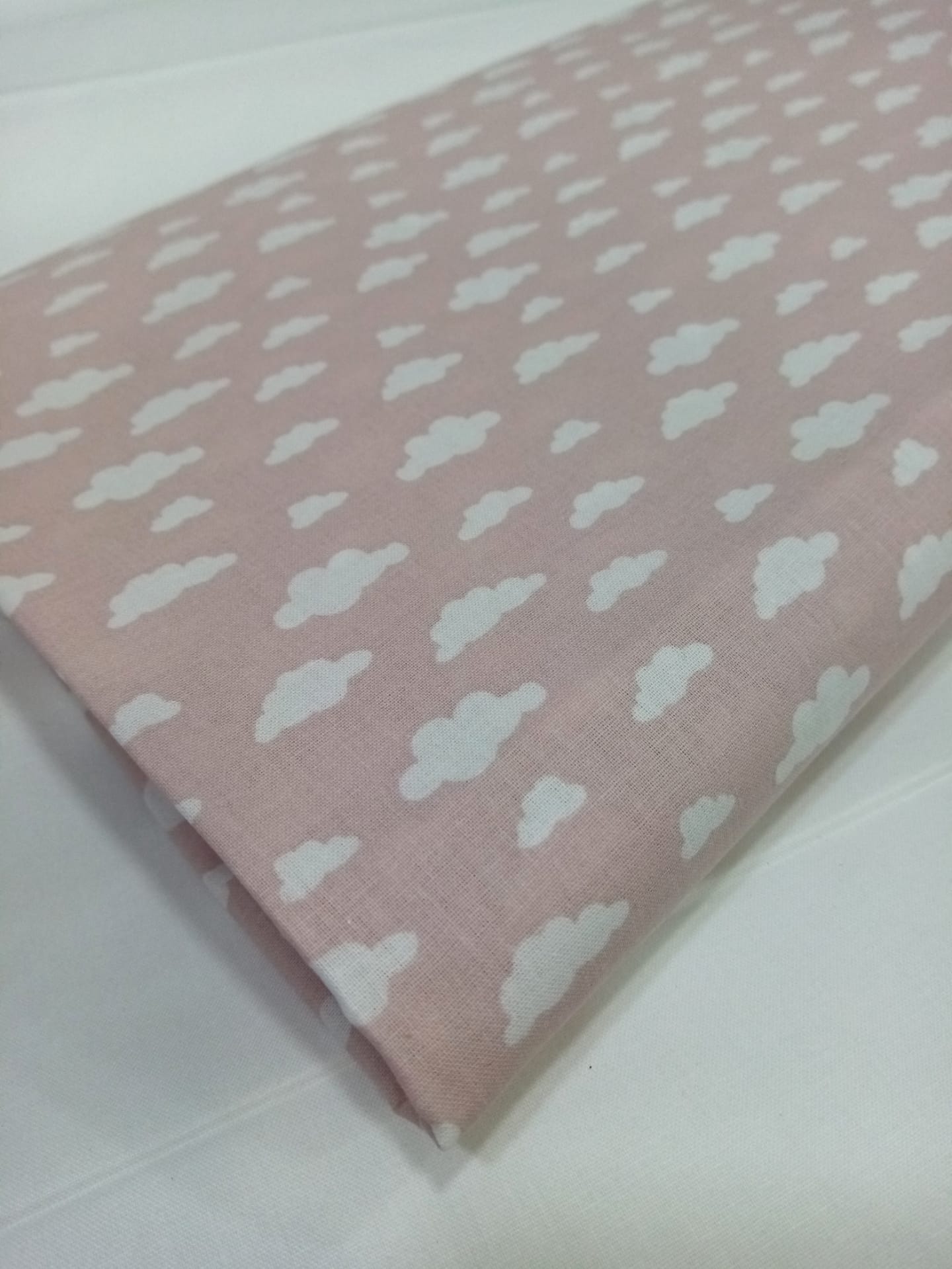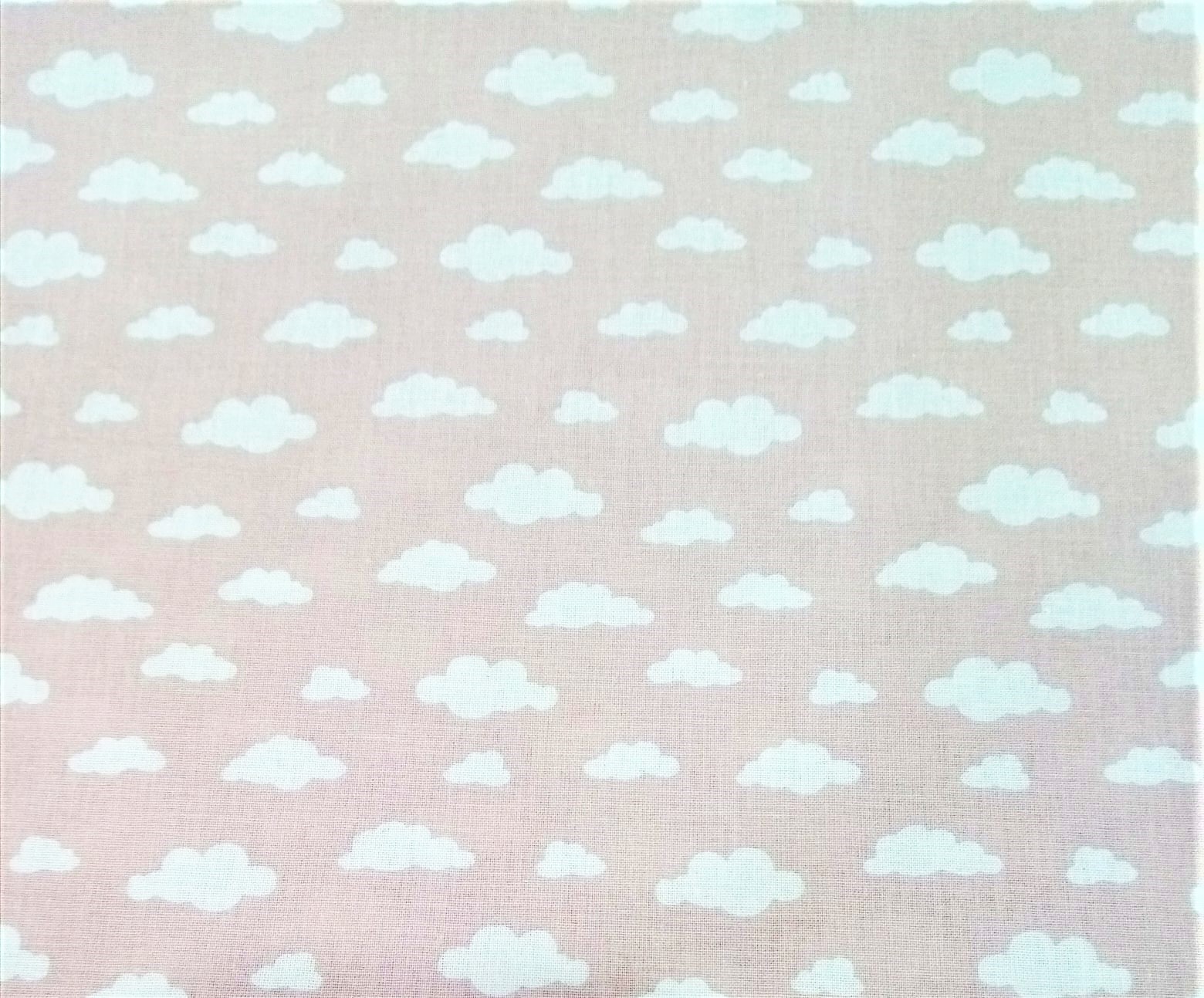 Popeline Domotex 100% algodão com nuvens brancas em fundo rosa velho