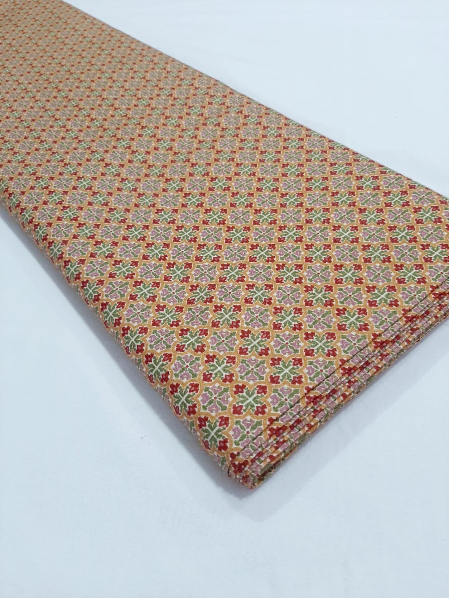 Orient Express 5 0,17 € Partilhar Adicionar Contactar 50 unidades em stock Tecido Stof Fabrics 100% algodão, com motivos em mostarda, verde e vermelho escuro 1.15m de largo 110 gr/m² Certificação Oeko-Tex Standard 100 Classe I - Texteis livres de substâncias nocivas Corte mínimo 20cm