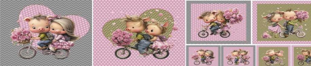 Painel 100% algodão, com 1.40m de largura e 40cm de altura, com porquinhos em tons de rosa.