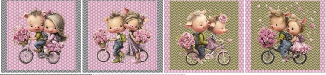 Painel 100% algodão, com 1.40m de largura e 40cm de altura, com porquinhos em tons de rosa.