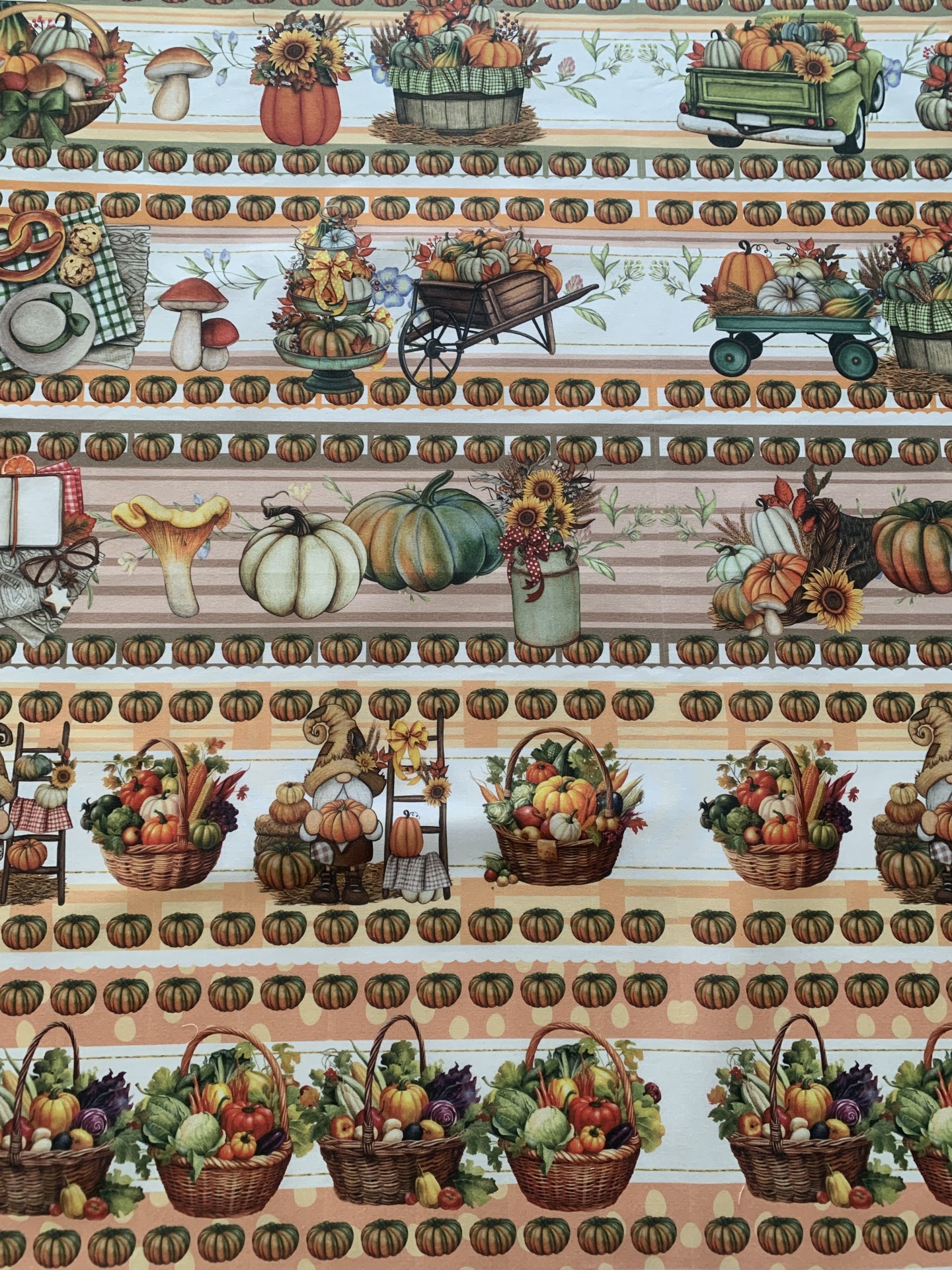 Painel 100% algodão com 5 barras todas elas diferentes com motivos variados.
