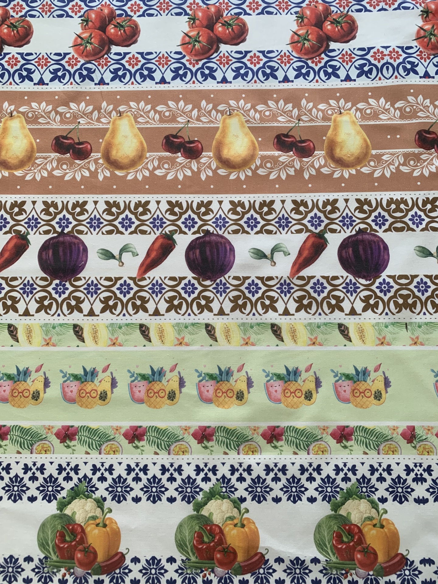 Painel 100% algodão com 5 barras todas elas diferentes com motivos variados.