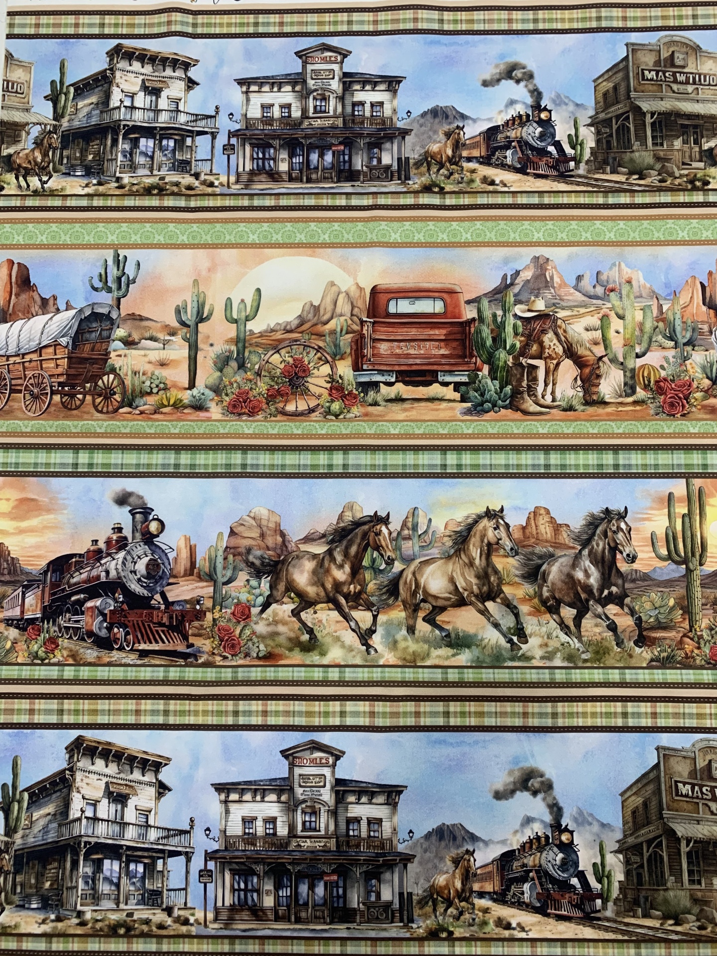 Painel 100% algodão com 5 barras todas elas diferentes com cavalos.