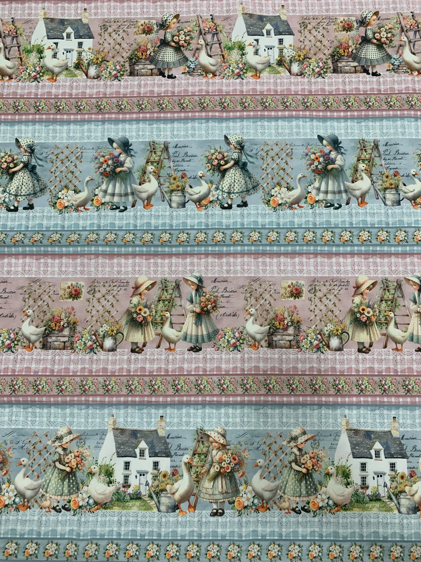 Painel 100% algodão com 5 barras todas elas diferentes com motivos de campo.