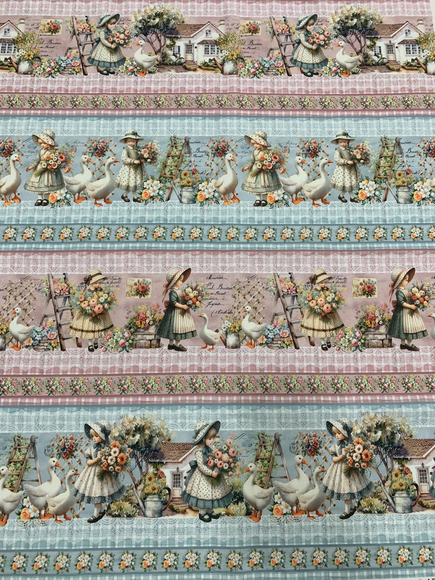 Painel 100% algodão com 5 barras todas elas diferentes com motivos de campo.