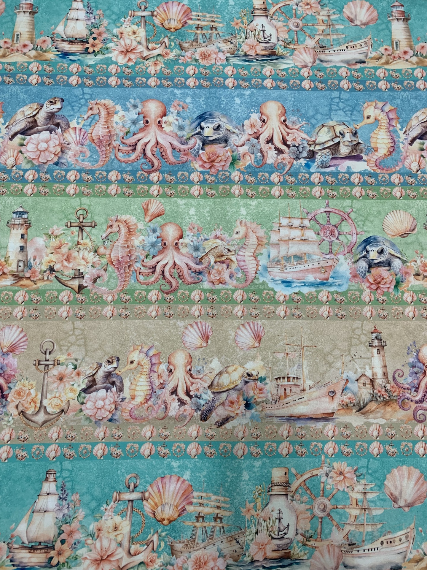 Painel 100% algodão com 5 barras todas elas diferentes com motivos de mar.