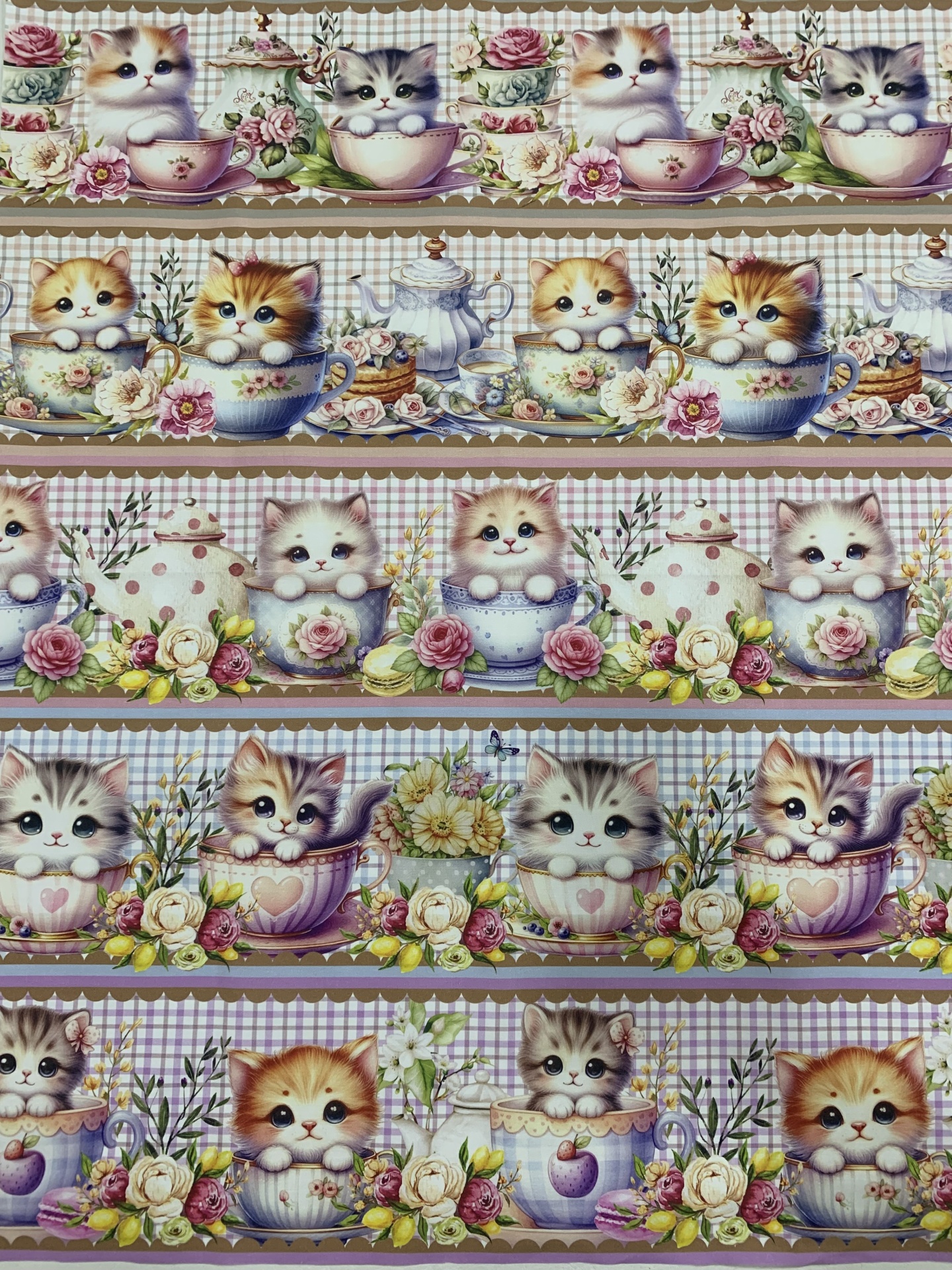 Painel 100% algodão com 5 barras todas elas diferentes com gatinhos.