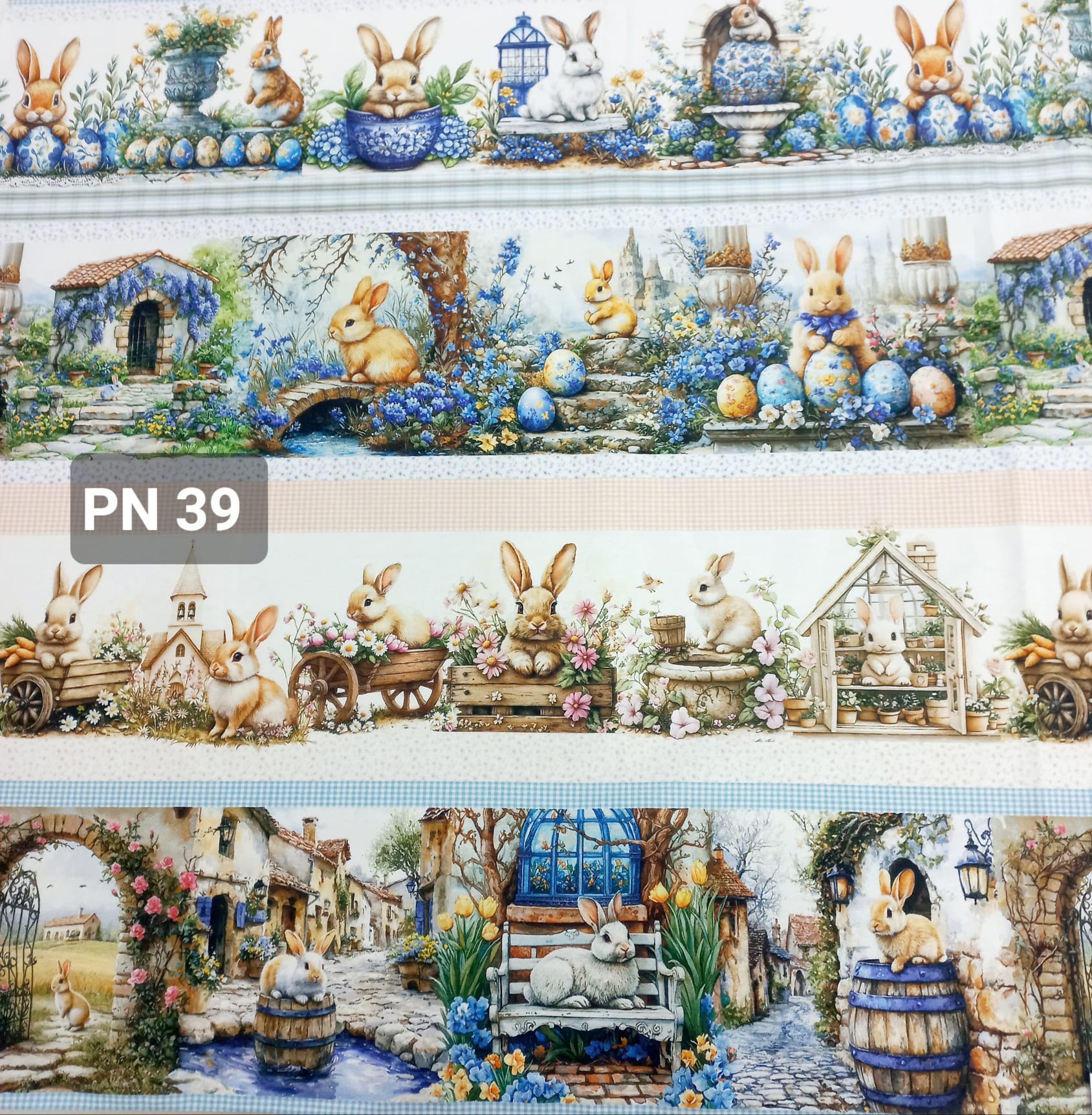 Painel 100% algodão com 5 barras todas elas diferentes com motivos de Páscoa.