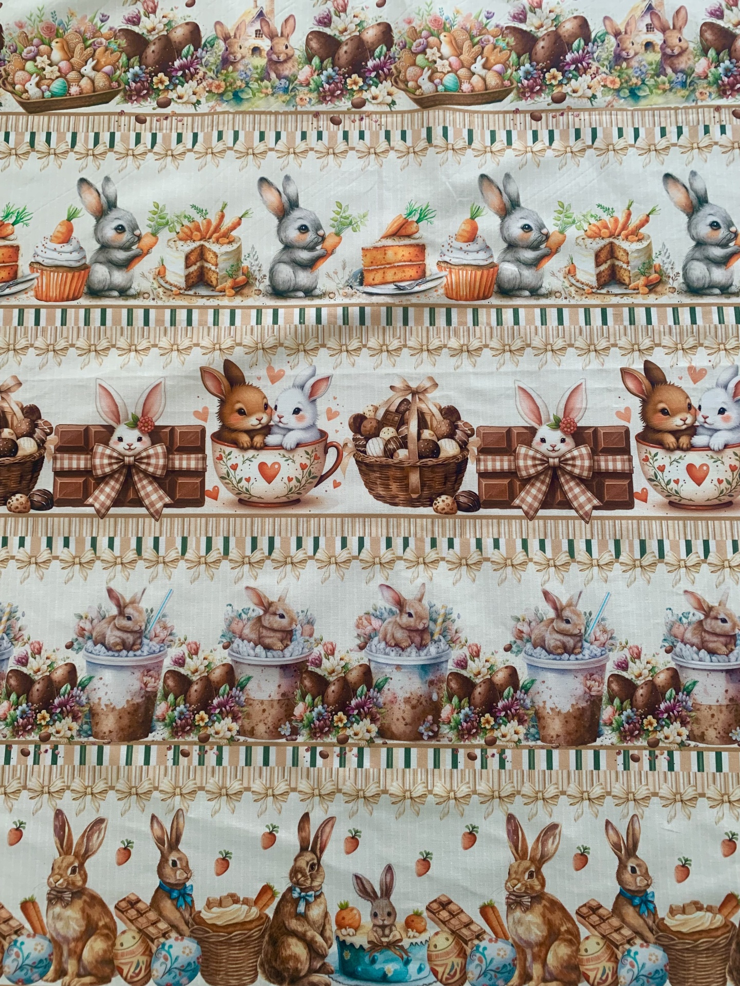 Painel 100% algodão com 5 barras todas elas diferentes com motivos de Páscoa.