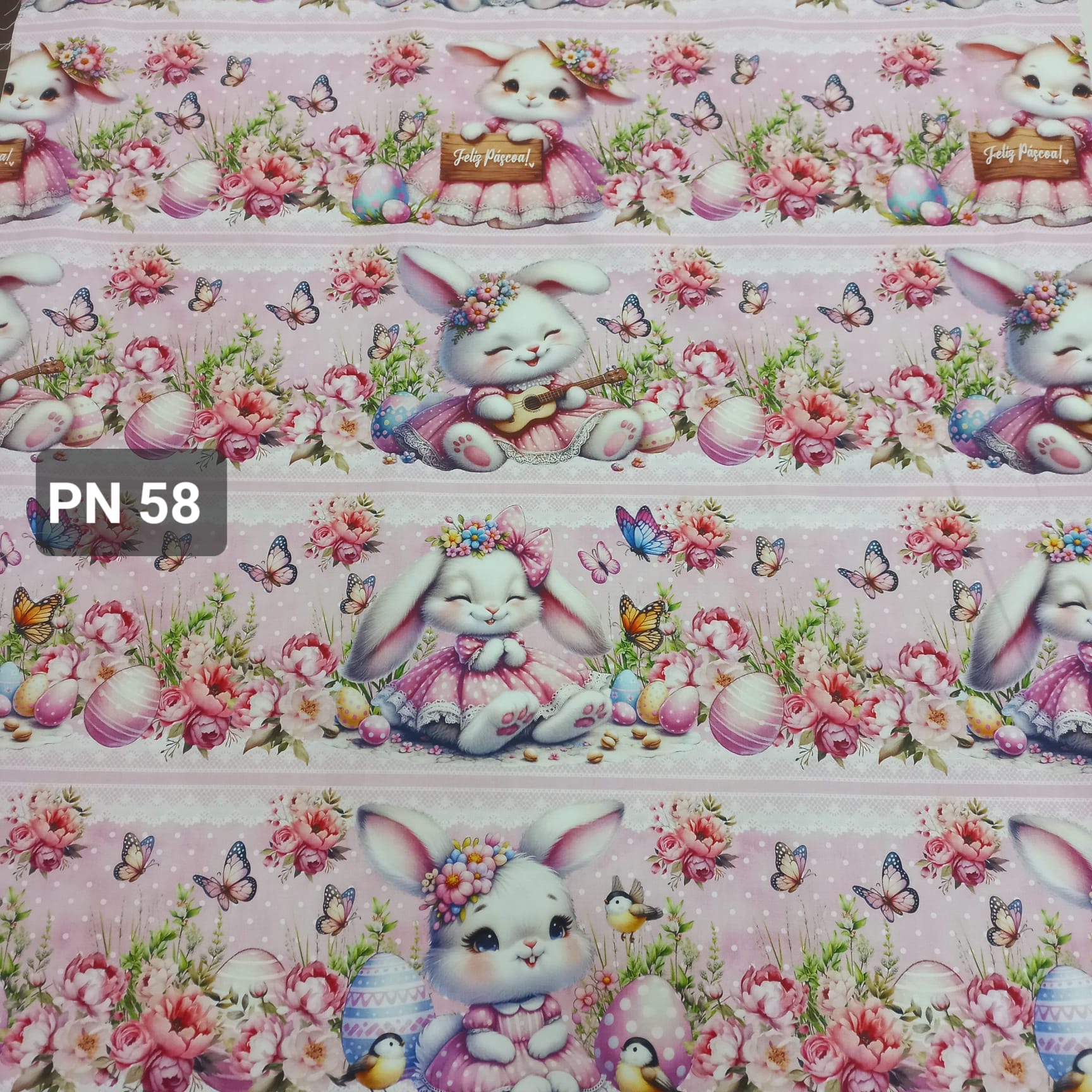 Painel 100% algodão com 5 barras todas elas diferentes com motivos de Páscoa.