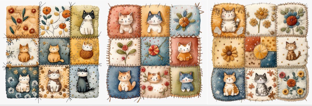 Painel 100% algodão, com 1.40m de largura e 50cm de altura, com gatinhos e flores.