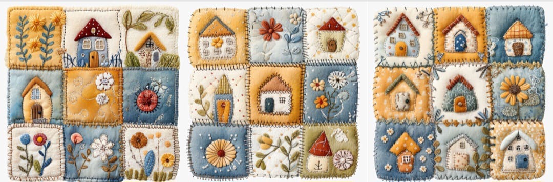 Painel 100% algodão, com 1.40m de largura e 50cm de altura, com casinhas e flores.