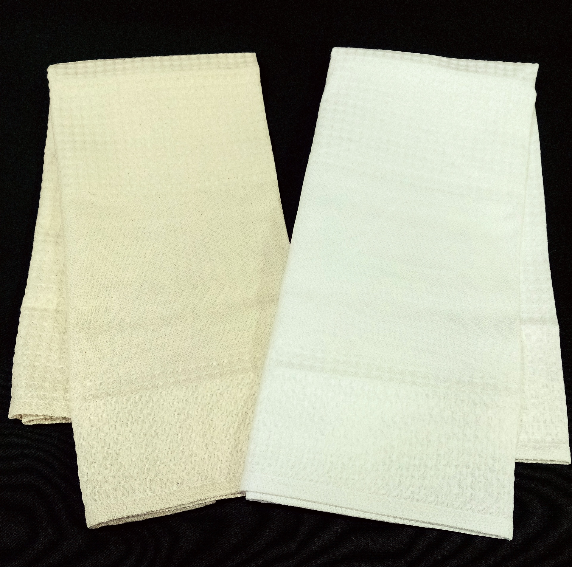 Pano de cozinha branco e bege 100% algodão, com uma barra para pintar