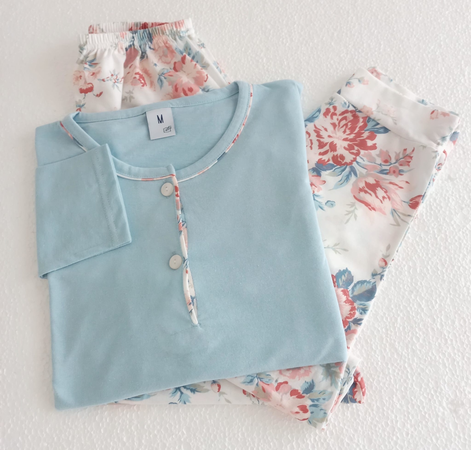 Pijama 7137 Azul 15,00 € Partilhar Tamanho M L XL XXl Adicionar Contactar 1 unidades em stock Pijama de senhora 50% algodão,50%poliéster, em azul. Vários tamanhos. Tags lingerie