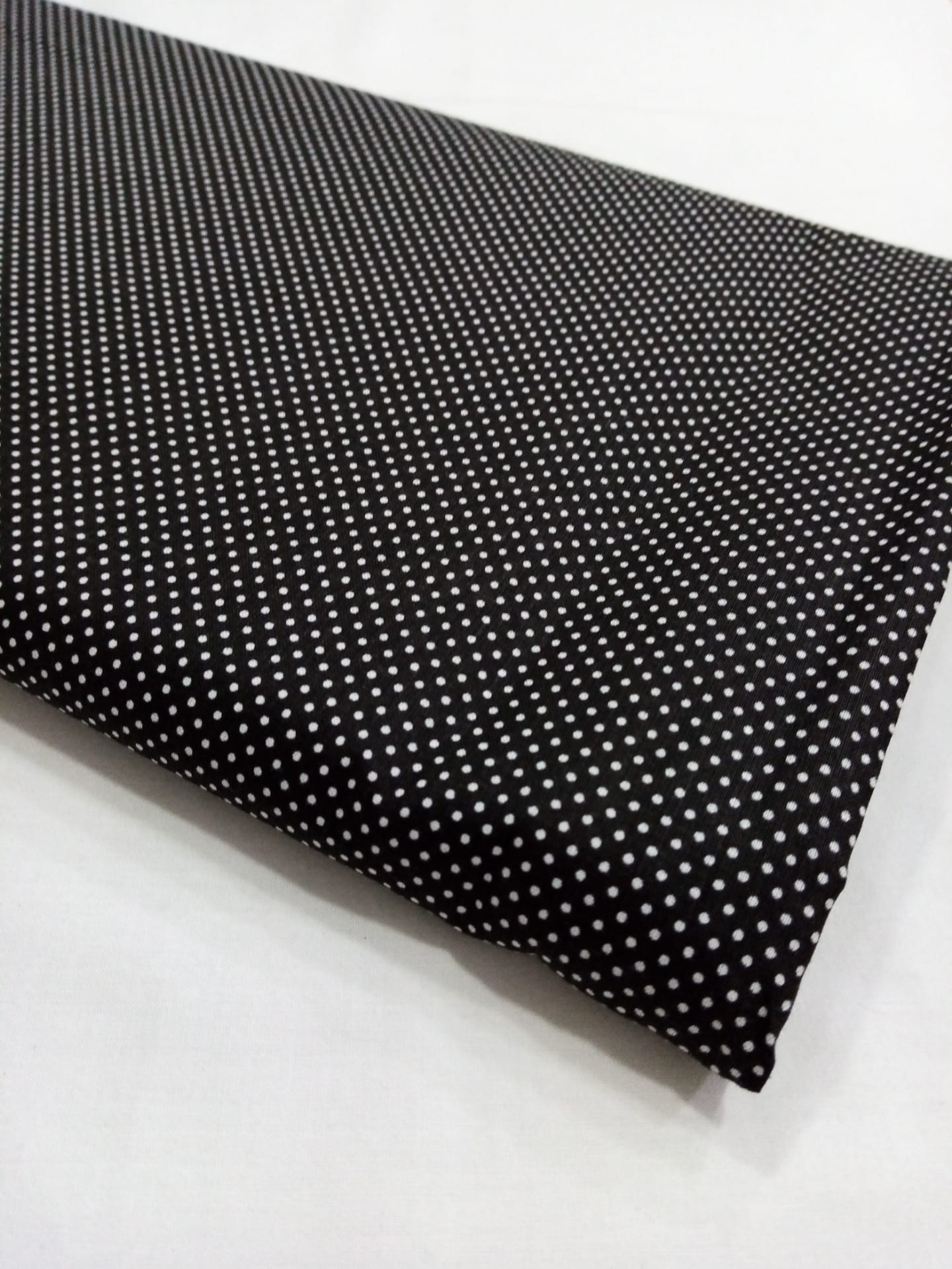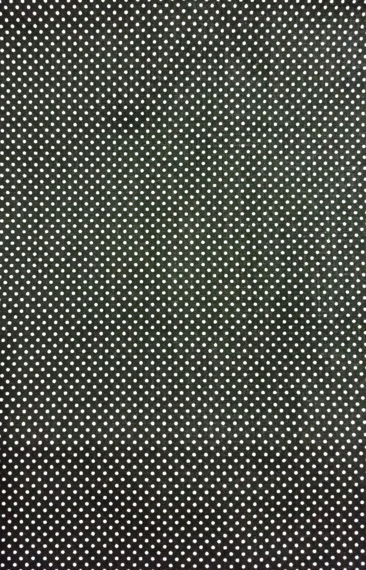 Pintinhas brancas em fundo preto 0,08 € Partilhar O produto encontra-se sem stock. Tecido 50% algodão,50%poliéster, com pintinhas brancas em fundo preto 1.60m de largo Corte mínimo 20cm