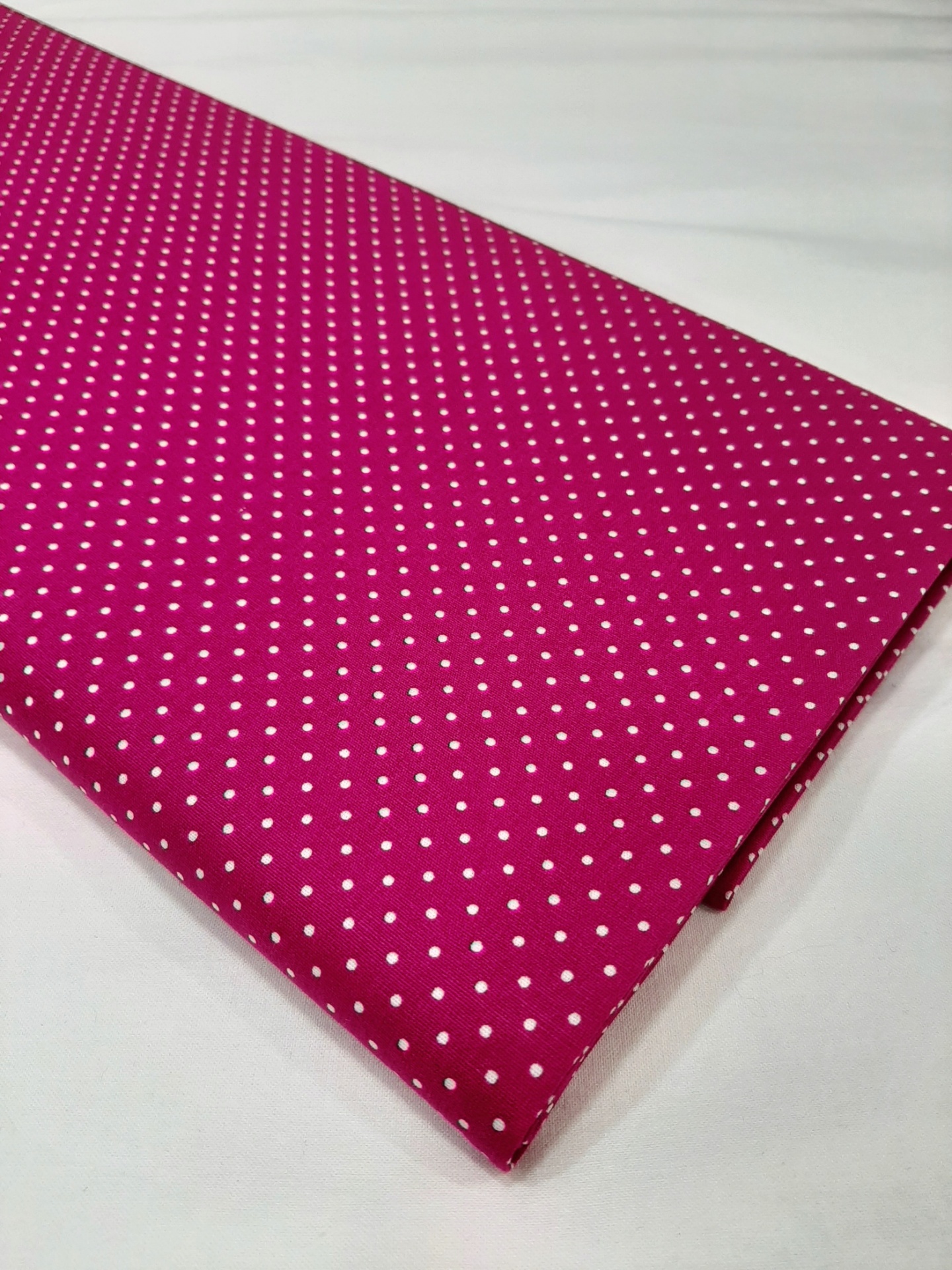Poppy - Pintinhas brancas em fundo rosa fucsia 0,09 € Partilhar Adicionar Contactar 140 unidades em stock Tecido Poppy Fabrics 100% algodão com pintinhas brancas em fundo rosa fucsia 1.50m de largo 130gr/m² Certificação Oeko-Tex Standard 100 Classe I - Texteis livres de substâncias nocivas Corte mínimo 20cm