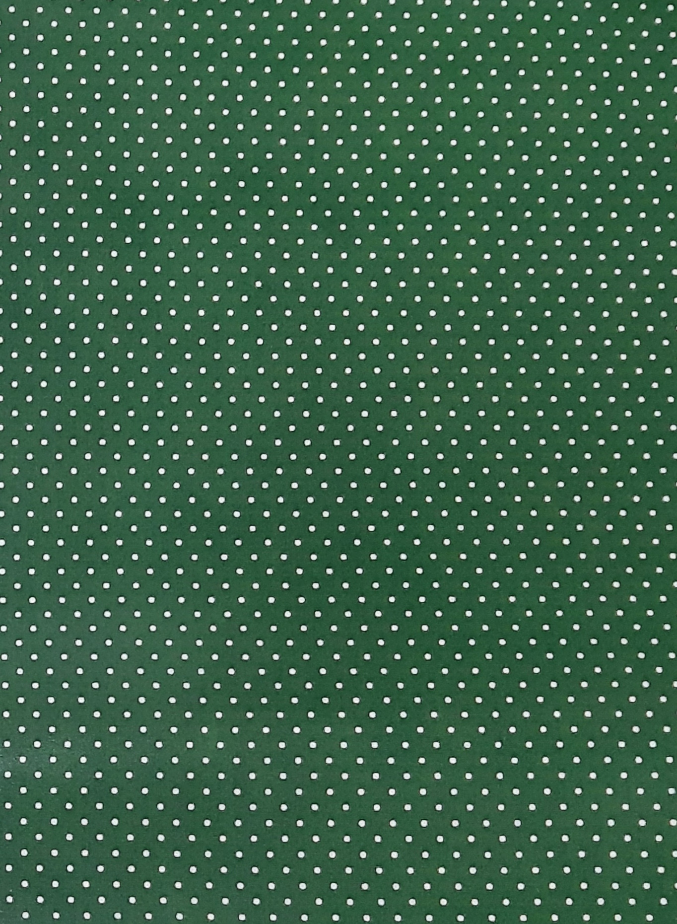 Plastificado com pintinhas brancas em fundo verde natal 0,13 € Partilhar O produto encontra-se sem stock. Tecido plastificado com pintinhas brancas em fundo verde natal 1.40m de largo Corte mínimo 20cm