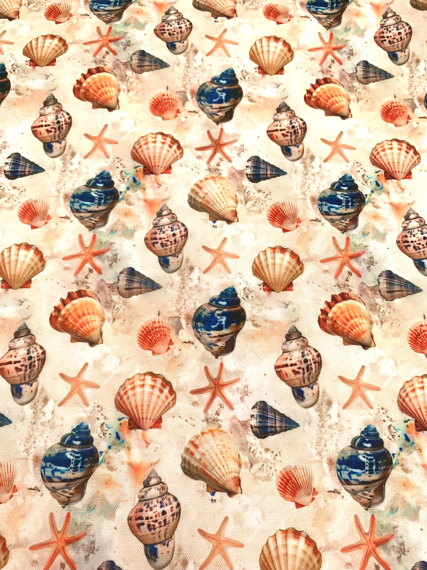 Policanva 100% poliéster, impermável, com conchas, búzios e estrelas do mar.