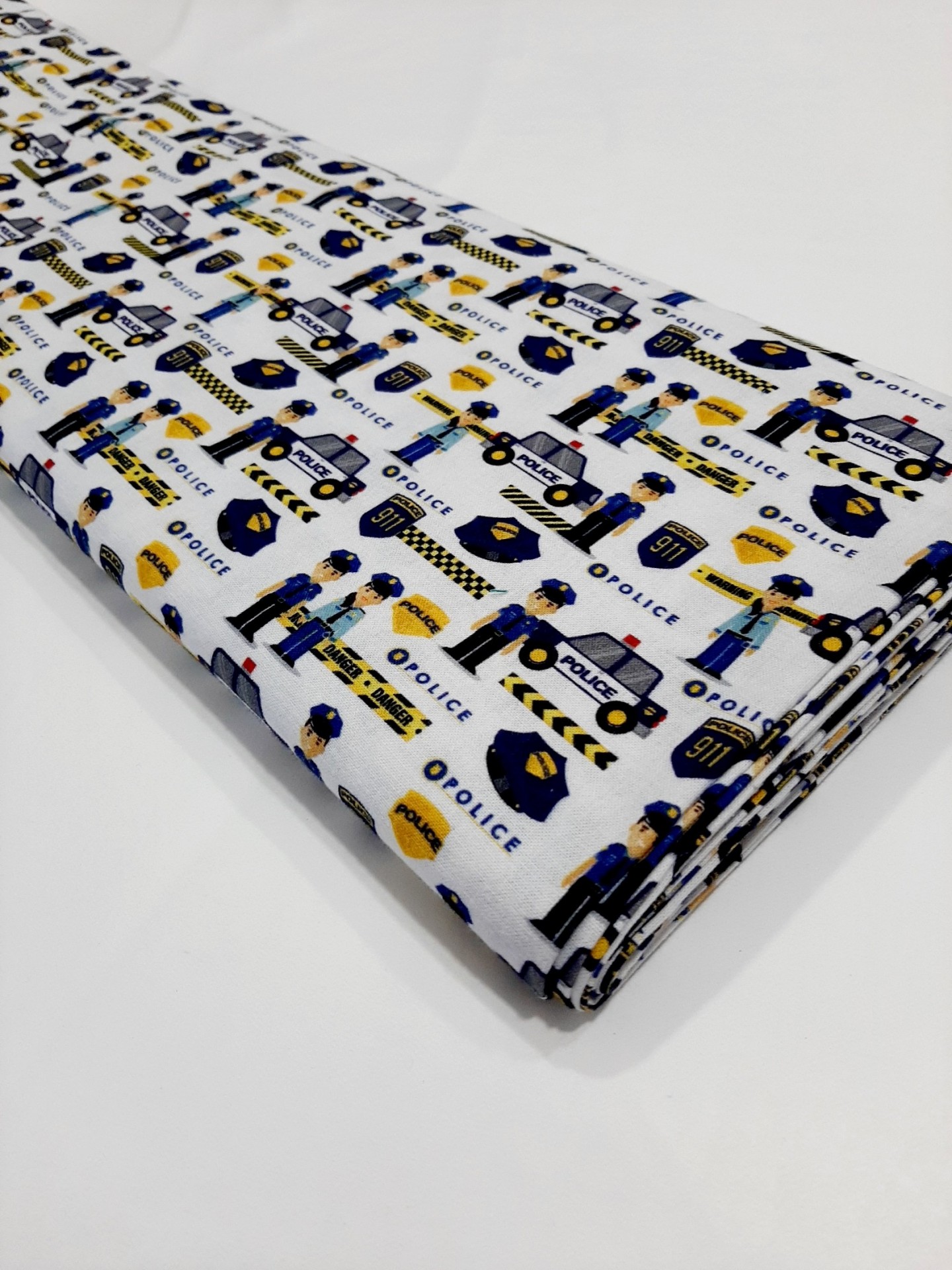 Polícia 0,14 € Partilhar Adicionar Contactar 210 unidades em stock Tecido 100% algodão, com motivos de polícia em fundo branco. 1.50m de largo Corte mínimo 20cm Tags Profissões