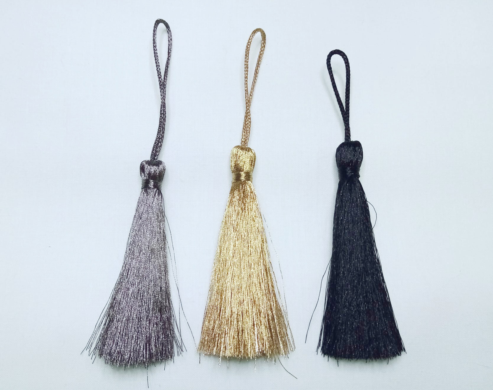 Pompons 120440 1,95 € Partilhar Cor Prata Envelhecida Dourado Preto Adicionar Contactar 4 unidades em stock Pompons para chaves 75mm