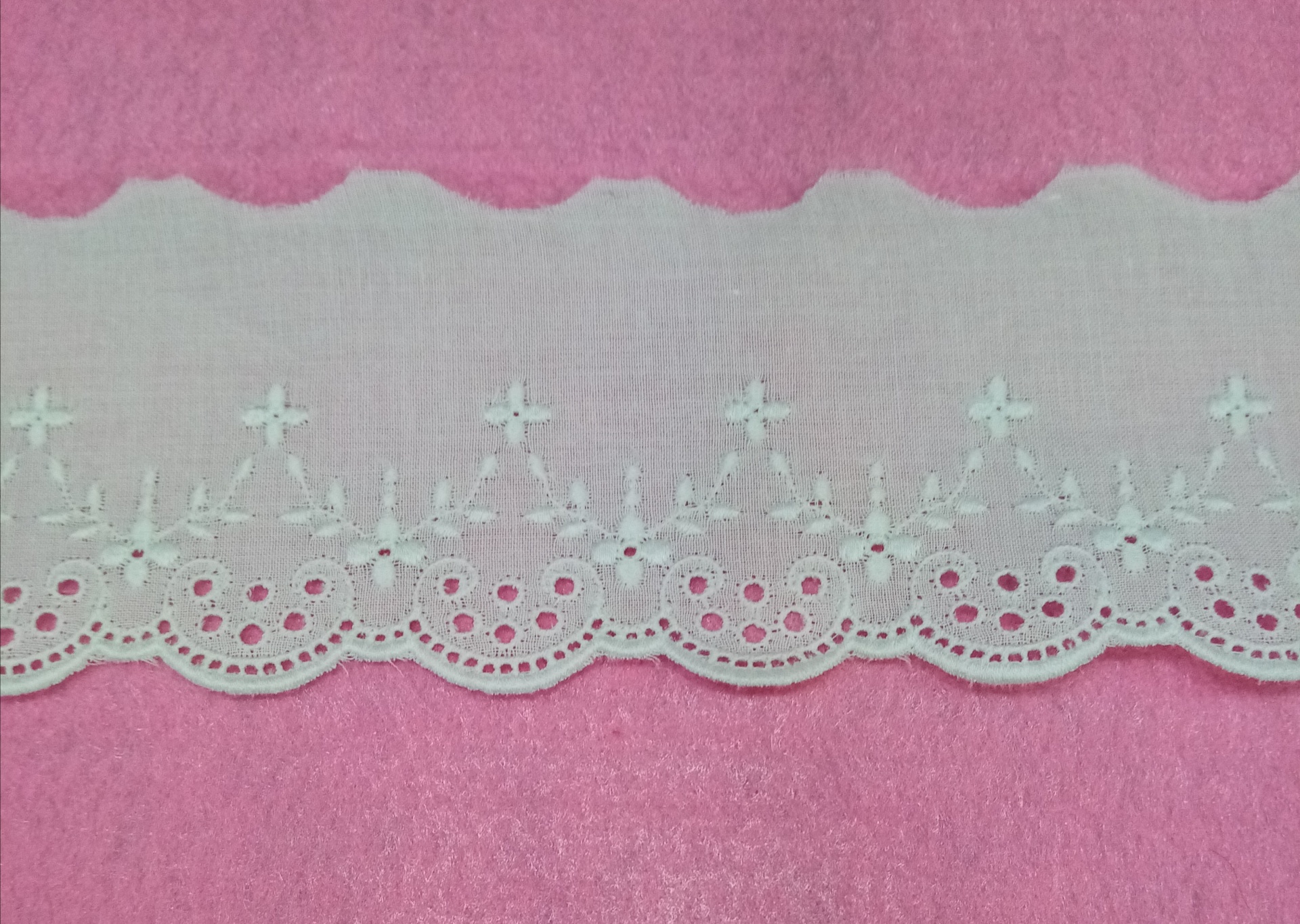 Ponta com flores e bolinhas R145048 0,04 € Partilhar Adicionar Contactar 400 unidades em stock Ponta 100% Algodão em branco com flores e bolinhas. 50mm Ideal para pontas de bainha, decoração de toalhas, cortinados, panos de tabuleiro, decoração de vestuário de criança e adulto. Corte mínimo 20cm