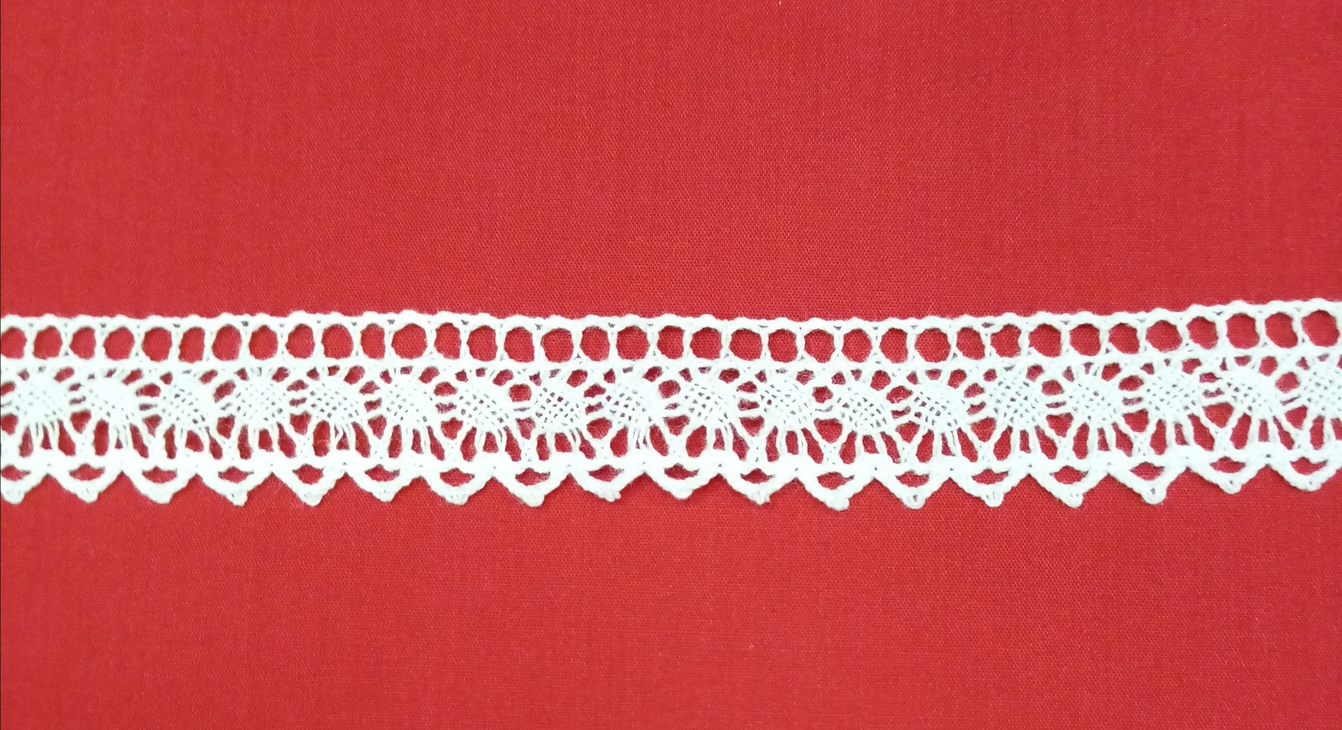 Ponta de Renda 130 0,01 € Partilhar O produto encontra-se sem stock. Ponta de Renda 100% algodão com biquinhos e rendilhado em branco. 22mm Ideal para pontas de bainha, decoração de toalhas, cortinados, panos de tabuleiro, decoração de vestuário de criança e adulto. Corte mínimo 20cm