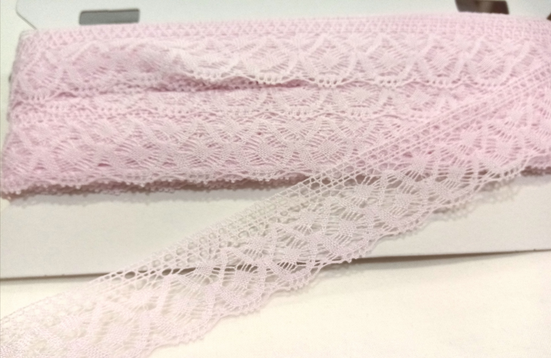 Ponta de Renda 49456 0,03 € Partilhar Adicionar Contactar Ponta de renda 100% algodão em rosa bebé 29mm Corte mínimo 20cm