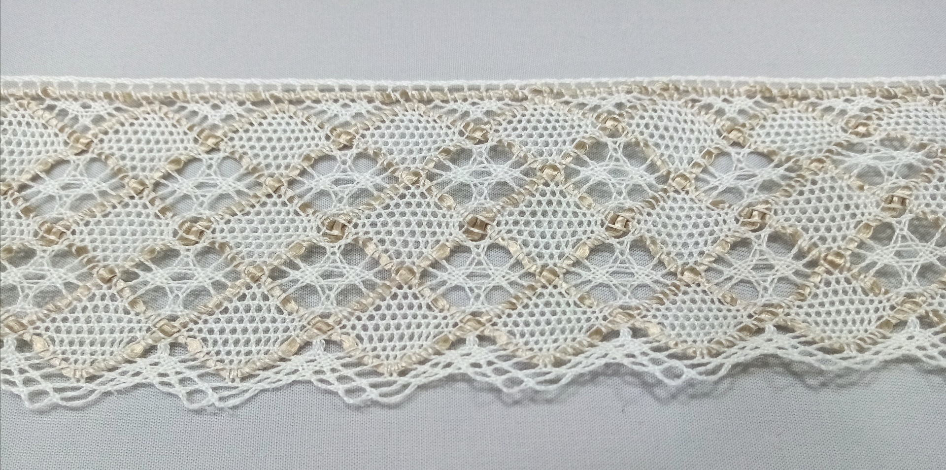 Ponta de renda 50089 0,03 € Partilhar Adicionar Contactar 200 unidades em stock Ponta de Renda 70%Viscose,30%algodão em branco e bege 65mm Corte mínimo 20cm