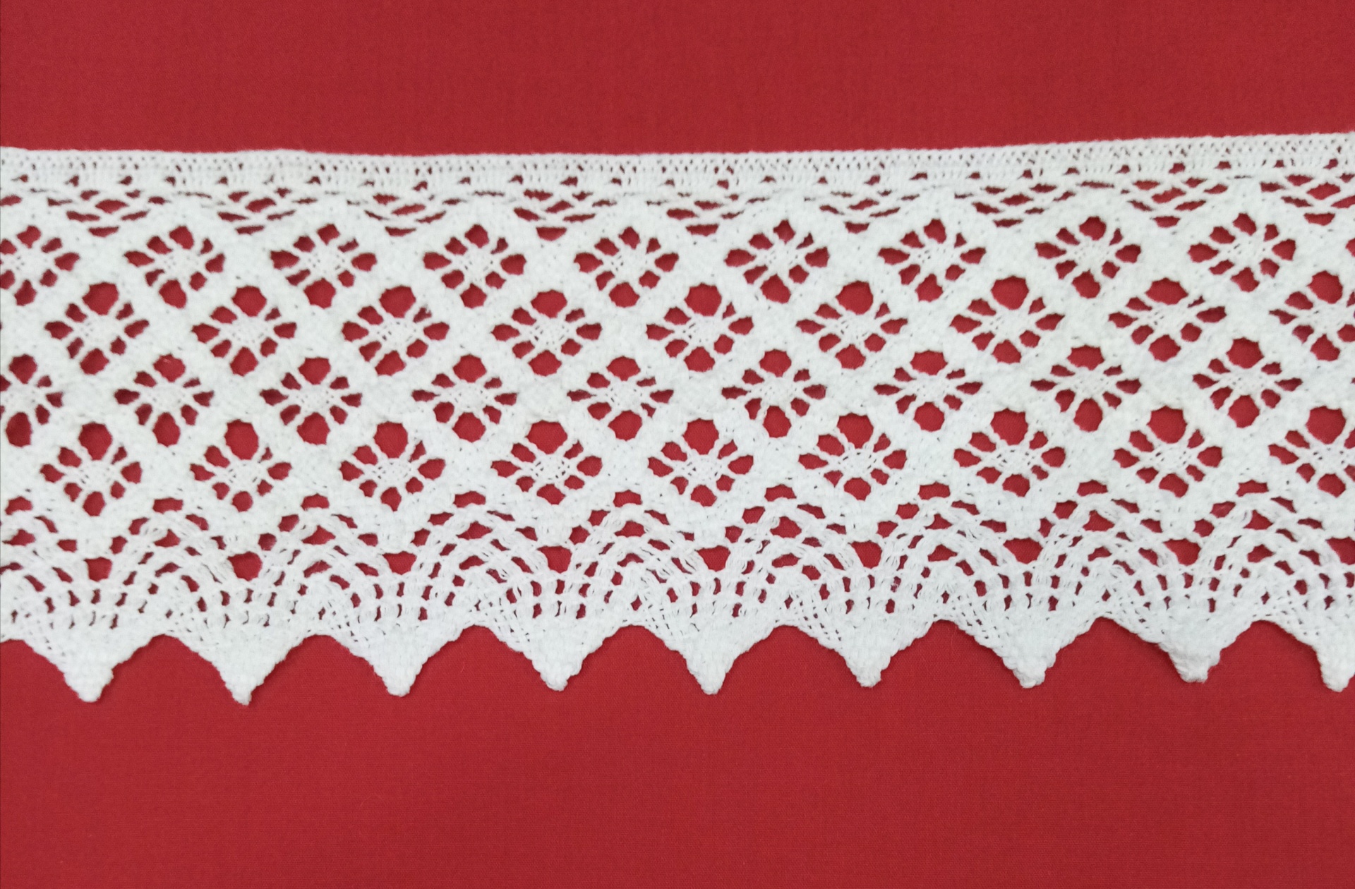 Ponta de Renda 648 0,03 € Partilhar O produto encontra-se sem stock. Ponta de Renda 100% algodão com biquinhos e rendilhado em branco 95mm Ideal para pontas de bainha, decoração de toalhas, cortinados, panos de tabuleiro, decoração de vestuário de criança e adulto. Corte mínimo 20cm
