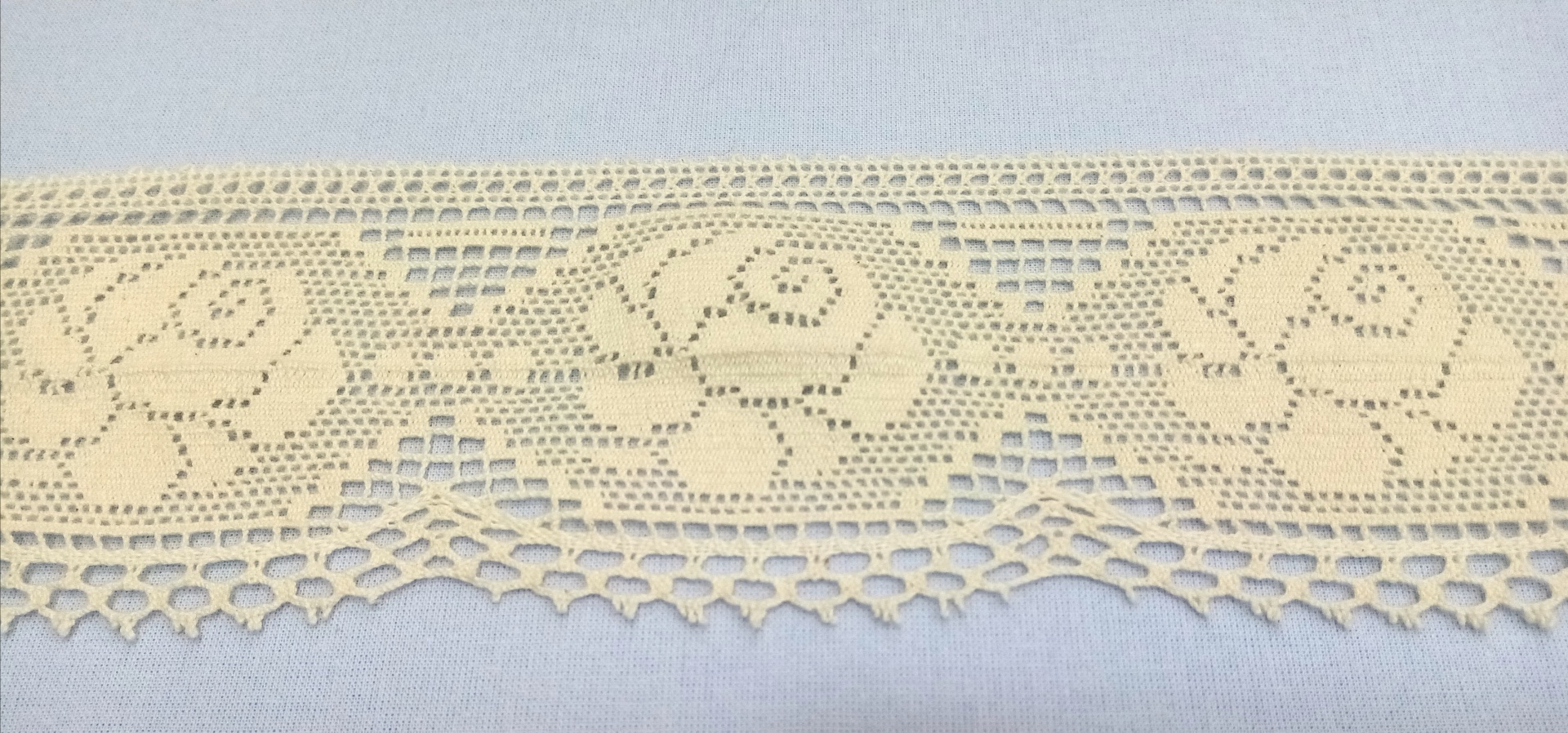 Ponta de Renda 790171 0,04 € Partilhar Adicionar Contactar 300 unidades em stock Ponta de Renda 100% algodão em bege com rosas 80mm Corte mínimo 20cm
