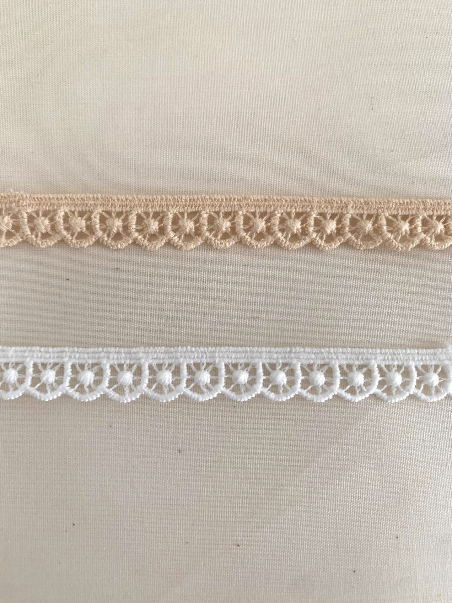 Ponta de renda 100% Algodão em branco ou bege.