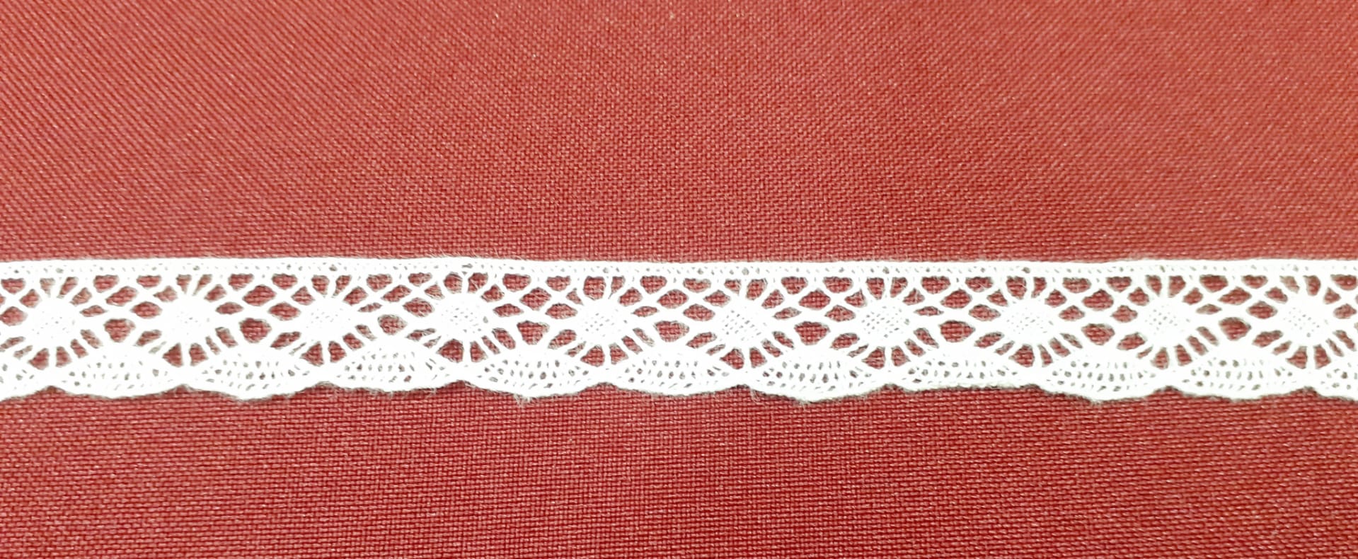 Ponta de renda com ondinhas 4034 0,01 € Partilhar Adicionar Contactar 195 unidades em stock Ponta de renda 100% algodão com ondinhas em branco 14mm Ideal para pontas de bainha, decoração de toalhas, cortinados, panos de tabuleiro, decoração de vestuário de criança e adulto. Corte mínimo 20cm