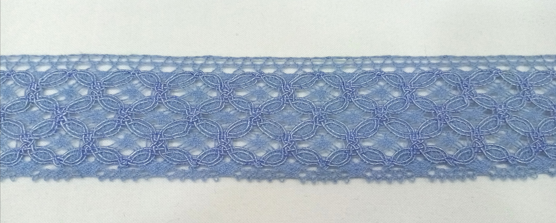 Ponta de Renda F907064 0,02 € Partilhar Adicionar Contactar 600 unidades em stock Ponta de renda 100% algodão em azul 40mm Corte mínimo 20cm