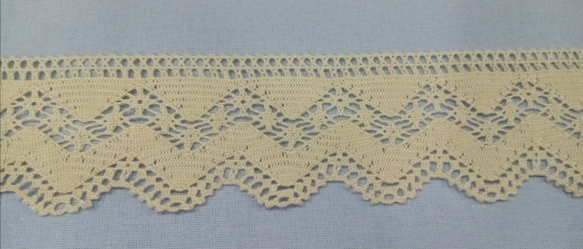 Ponta de Renda J0498 0,04 € Partilhar O produto encontra-se sem stock. Ponta de Renda 100% algodão com ondinhas e flores em bege 60mm Corte mínimo 20cm