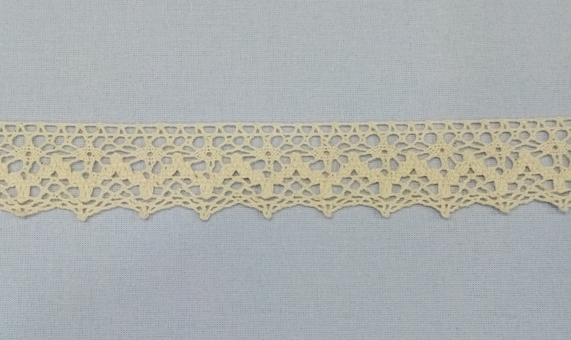 Ponta de Renda J227 0,01 € Partilhar Adicionar Contactar 280 unidades em stock Ponta de Renda 100% algodão com biquinhos em bege 36mm Corte mínimo 20cm