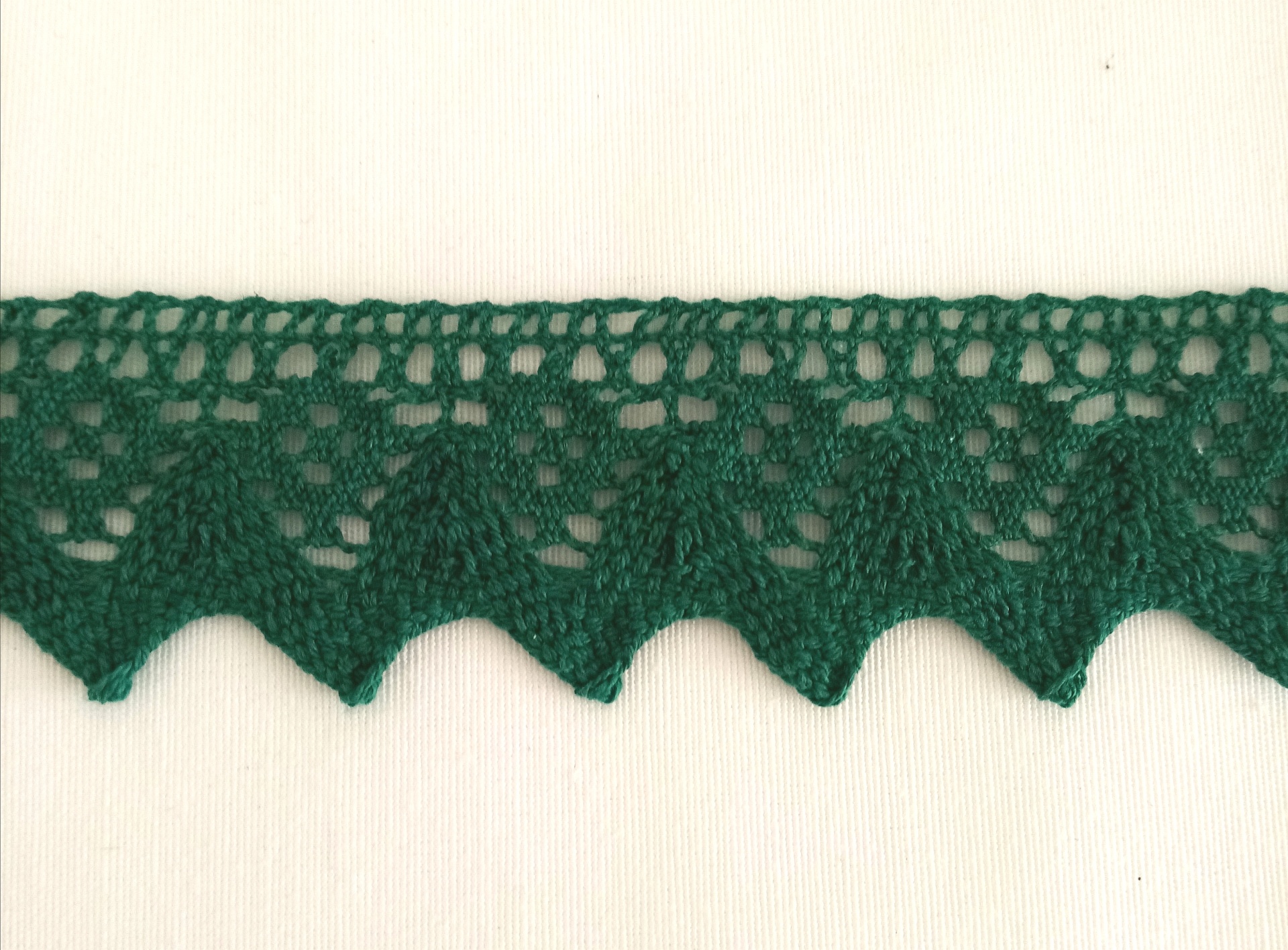 Ponta de Renda 100% algodão com biquinhos em verde.