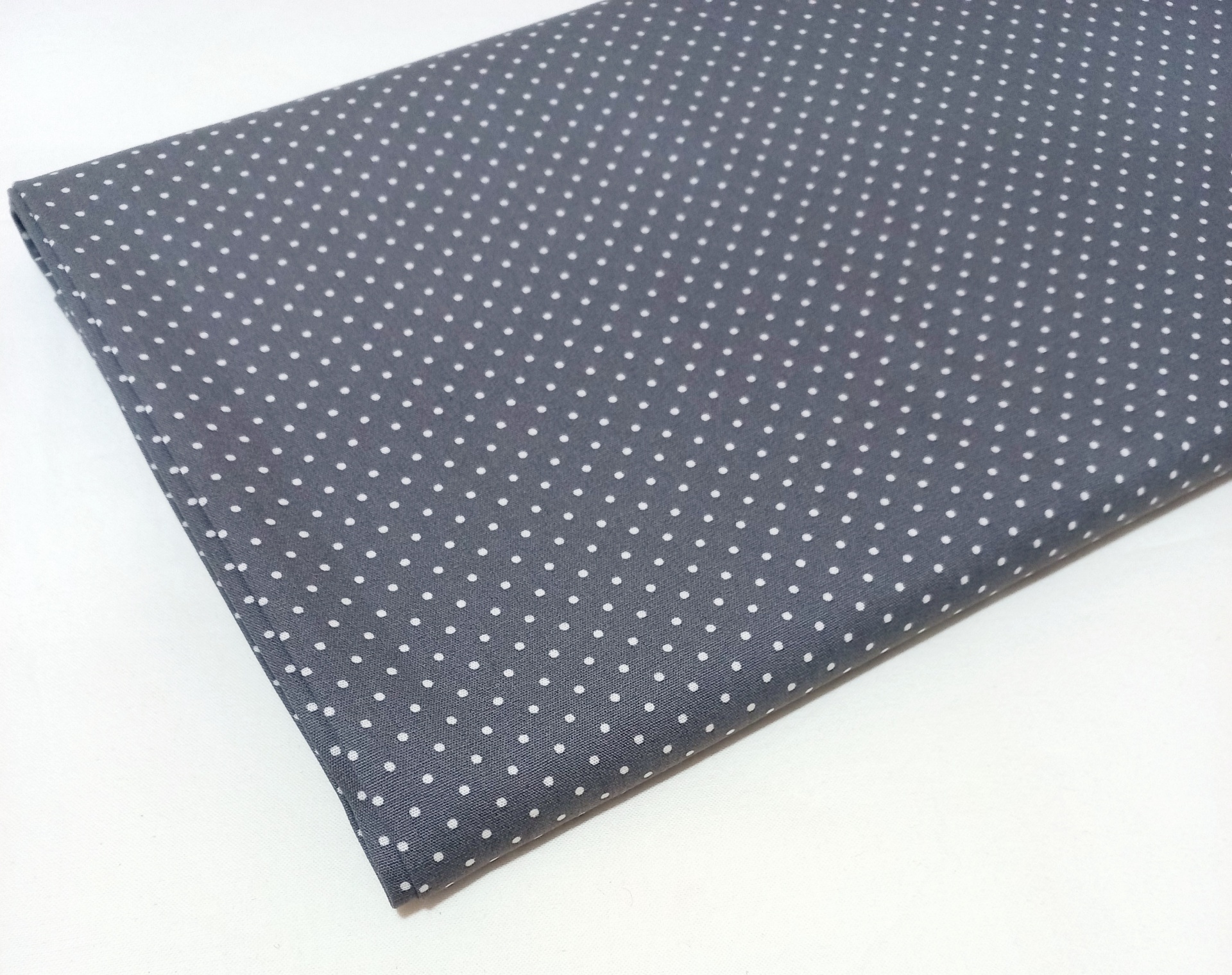 Popeline Poppy Fabrics 100% algodão com pintinhas brancas em fundo cinza escuro.