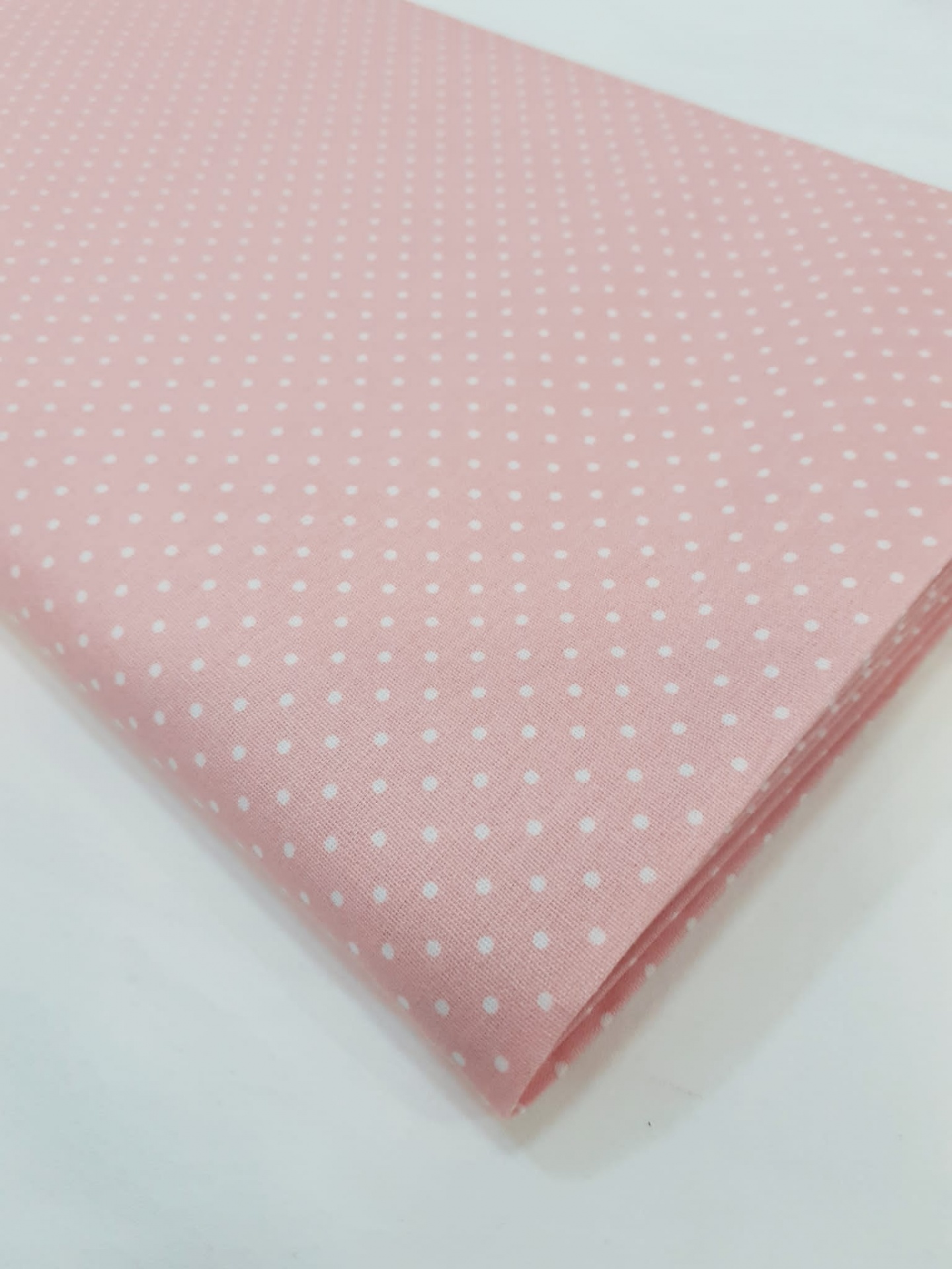Popeline Poppy Fabrics 100% algodão com pintinhas brancas em fundo rosa