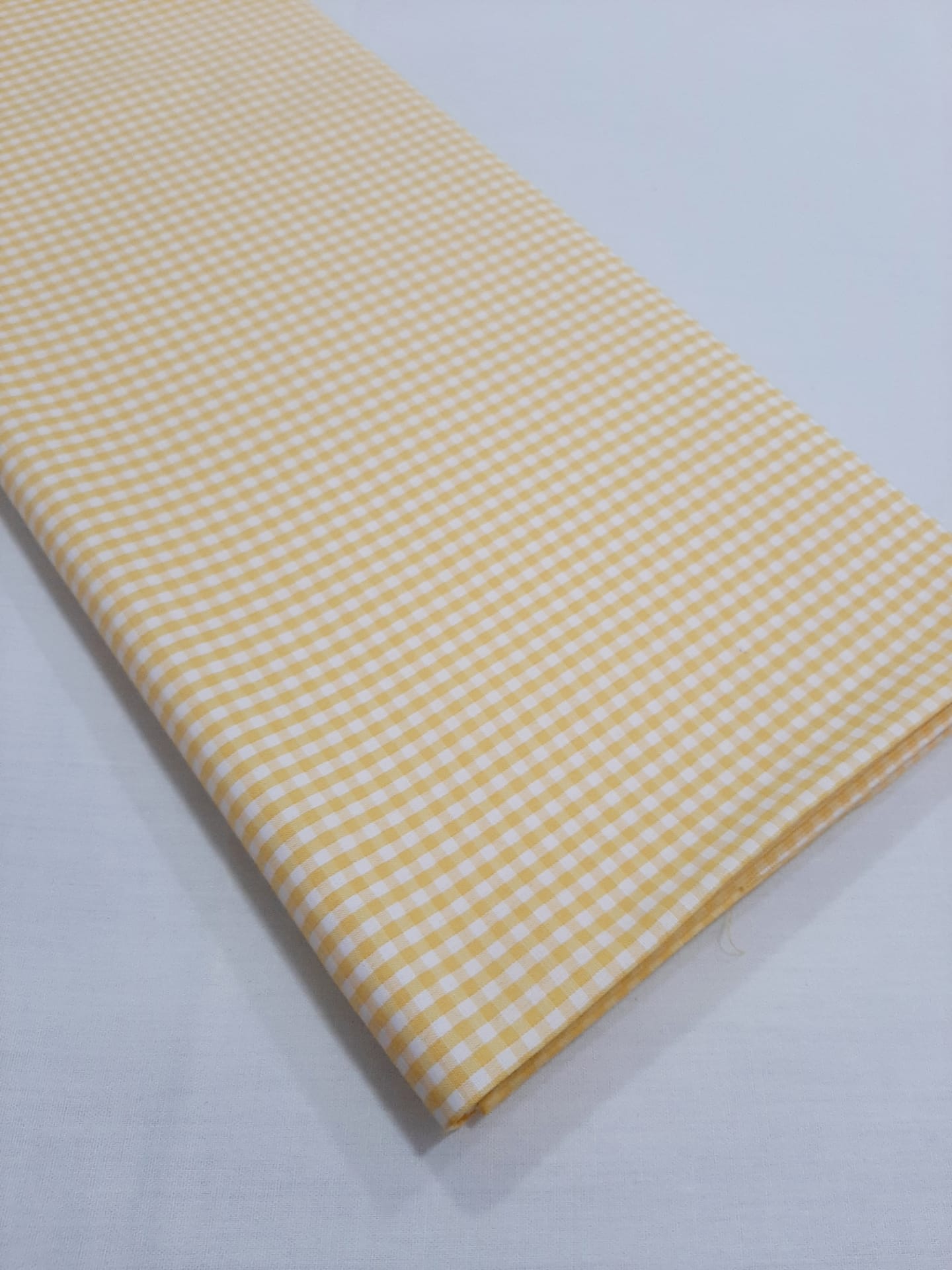 Tecido 60% algodão 40% poliéster, com quadradinhos amarelos e brancos
