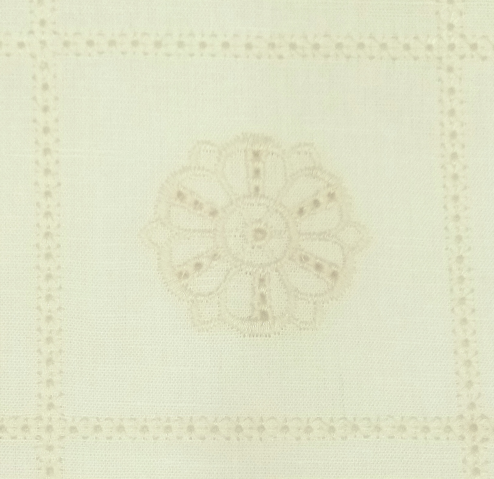 Quadrados 50%linho , 50% algodão com flores em cru.