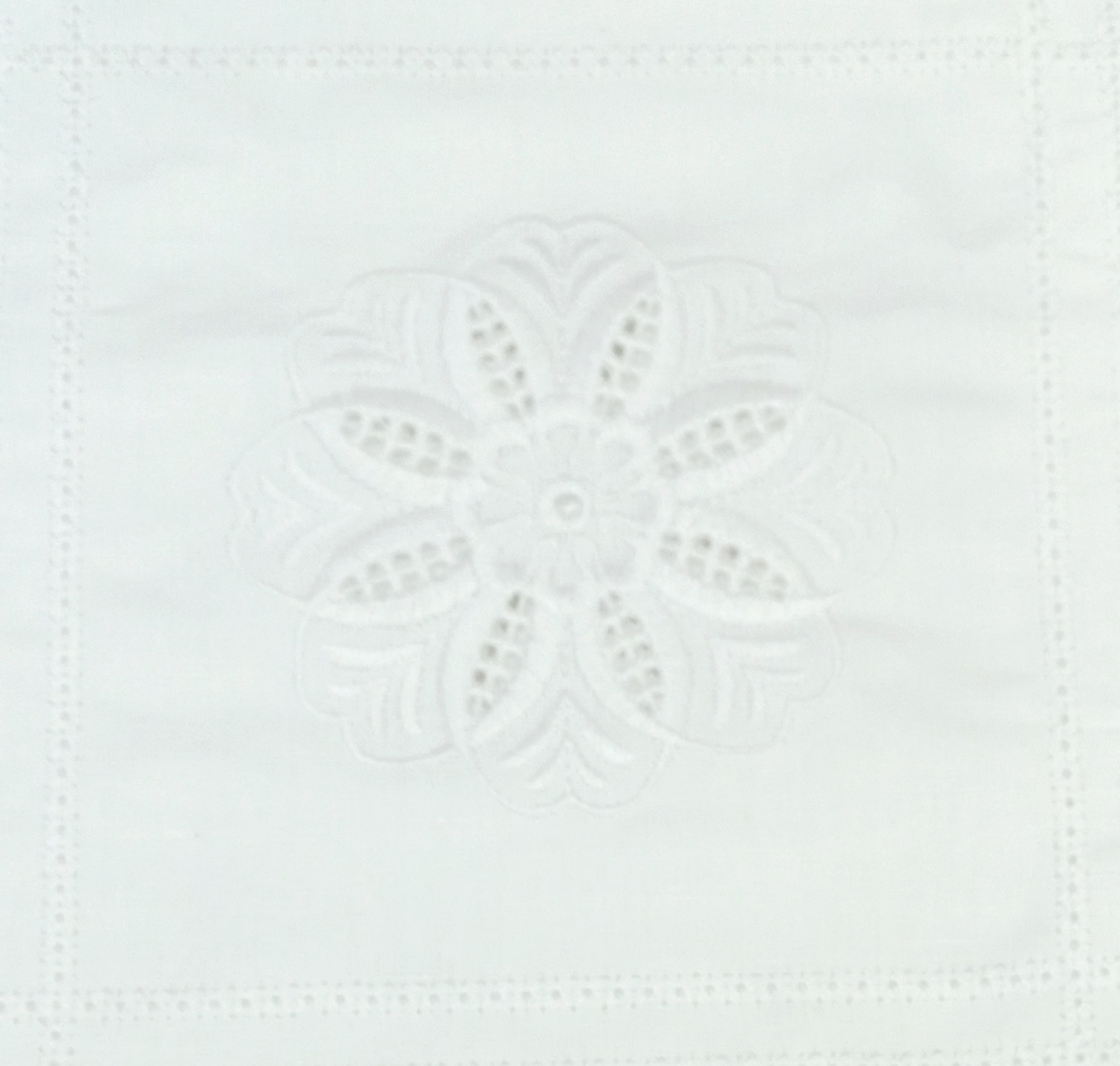 Quadrados 50%linho , 50% algodão com gerberas em fundo branco.