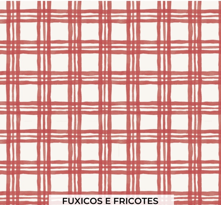 Tricoline Fuxicos e Fricotes 100% algodão xadrez vermelho pérola.